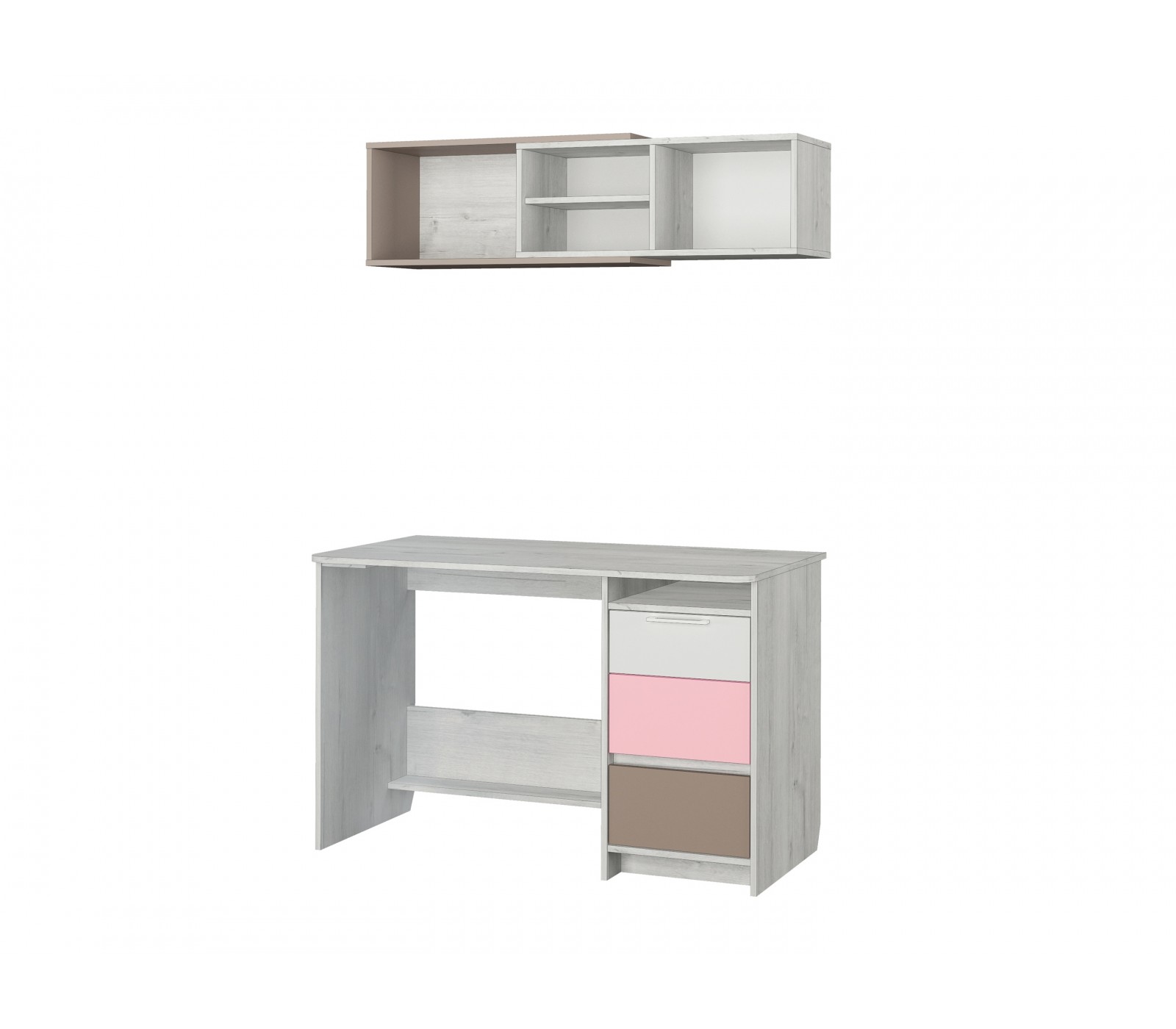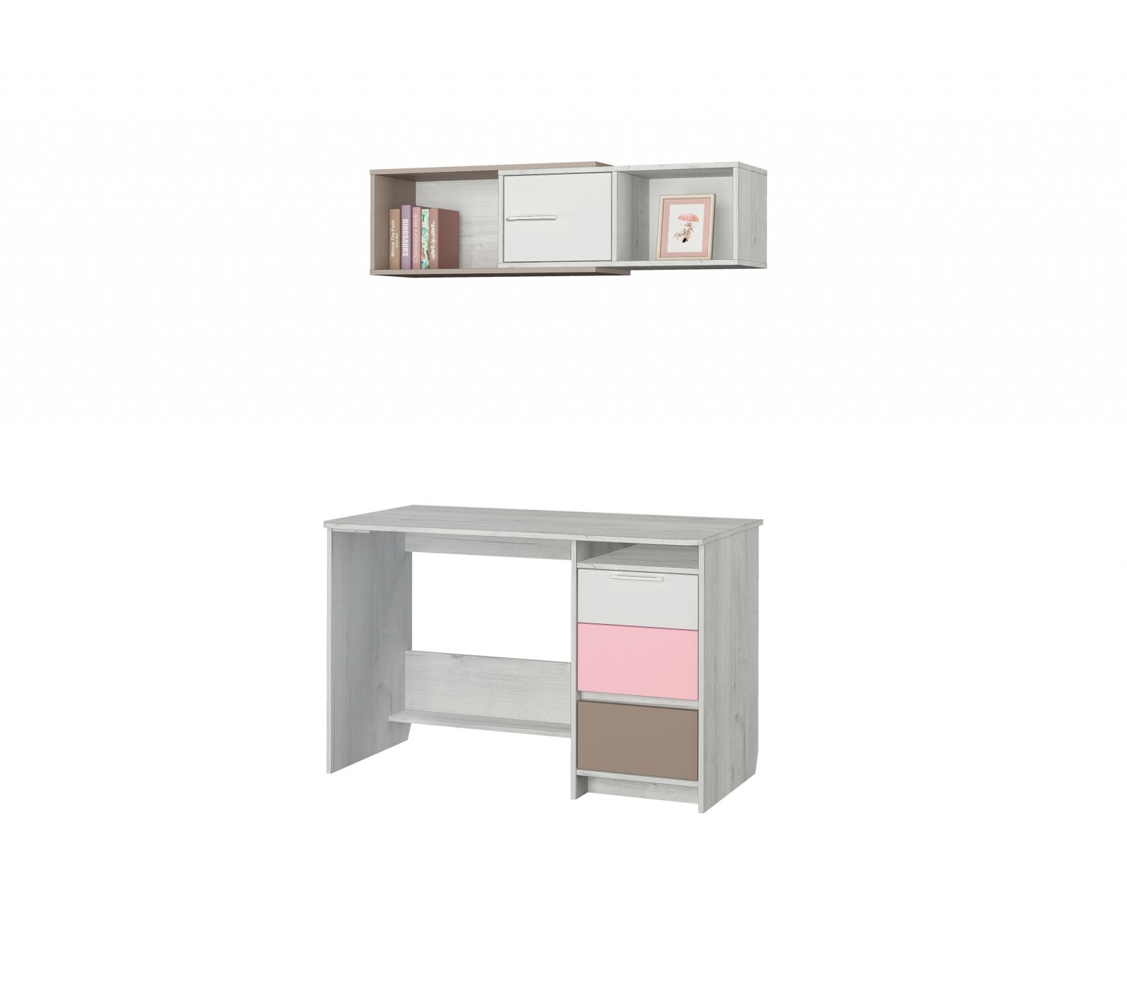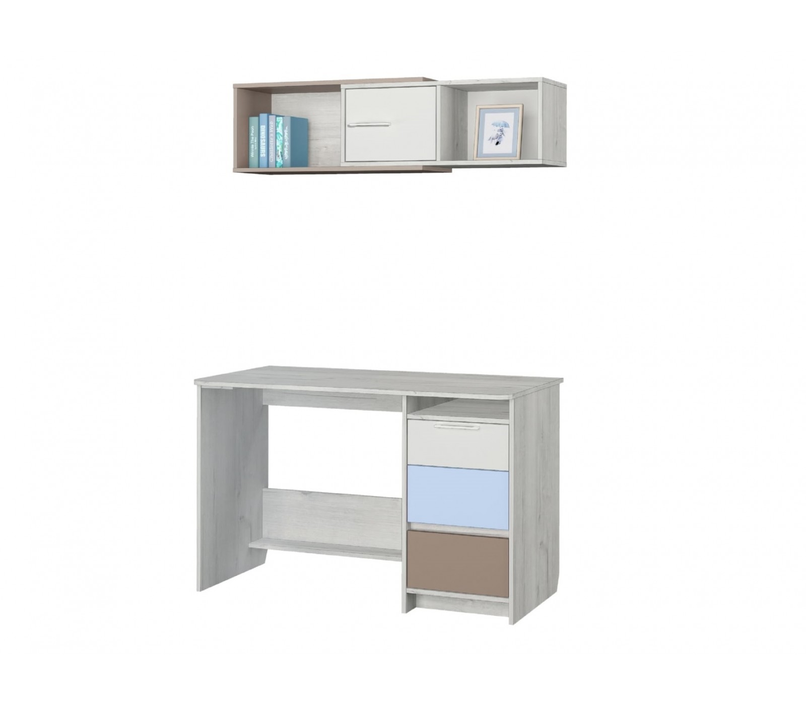 Полка навесная Зефир 7.2 для детской комнаты компактно впишется над письменным столом одноименной серии.