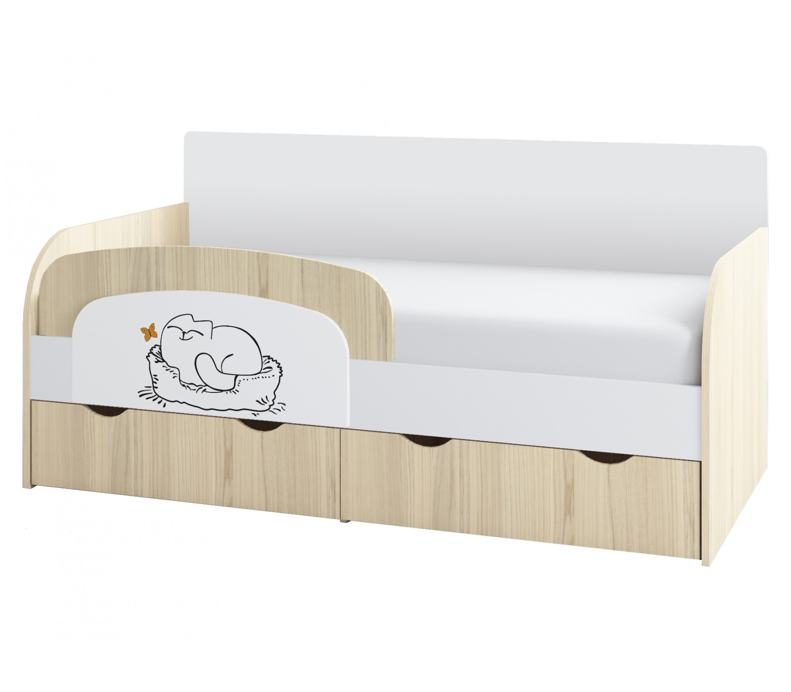 Односпальная кровать-тахта Кот с защитным бортиком одноименной яркой серии. Наличие жесткой спинки позволяет использовать кровать как диван.