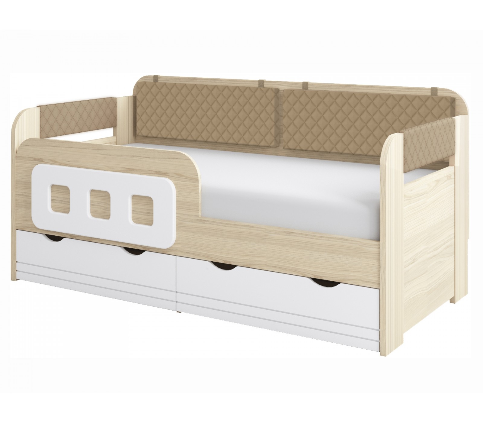 Односпальная кровать-тахта Стиль с защитным бортиком выполнена в спокойных тонах Туя Светлая.