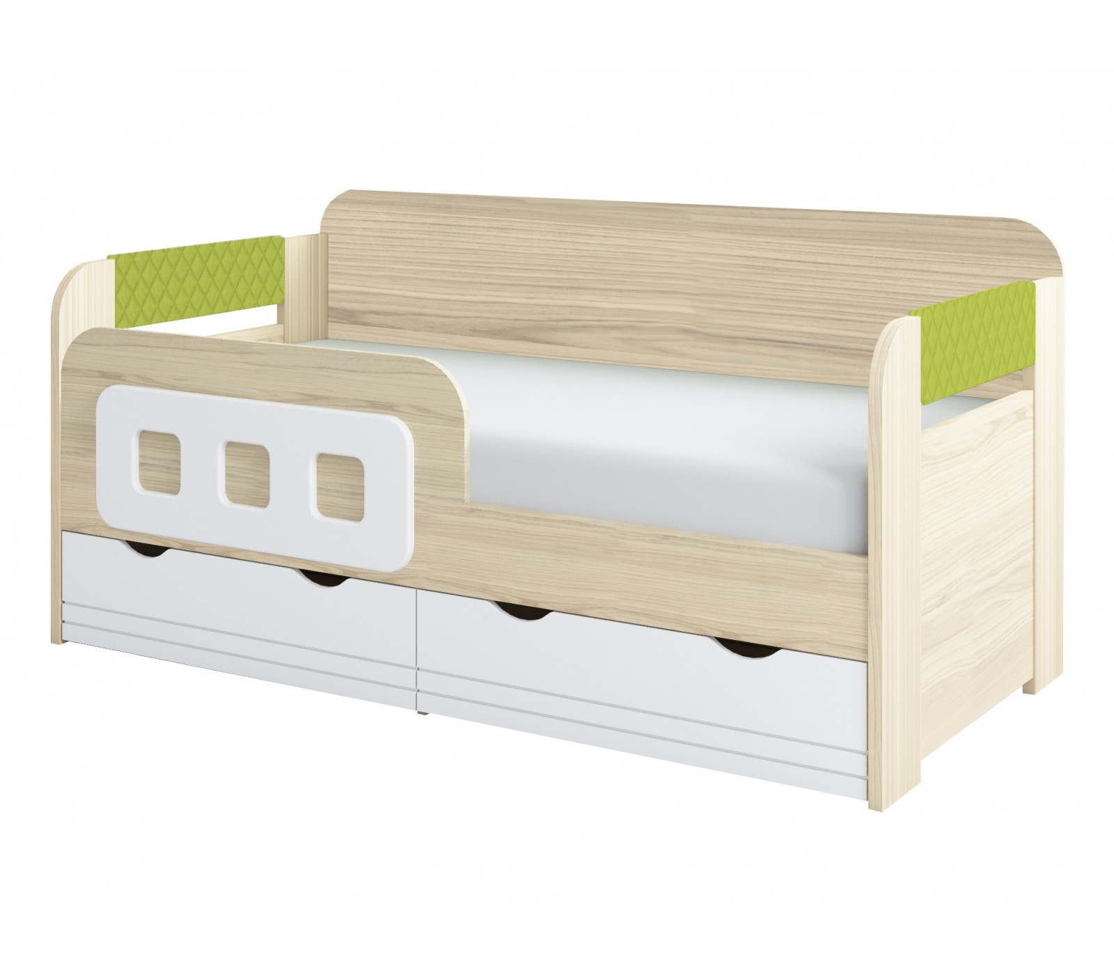 Односпальная кровать-тахта Стиль Лайм с защитным бортиком выполнена в спокойных тонах Туя Светлая.