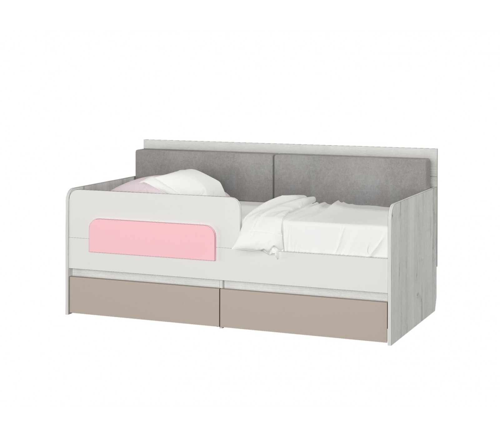 Односпальная кровать-тахта малая Зефир розовый с подушками и защитным бортиком одноименной яркой серии.
