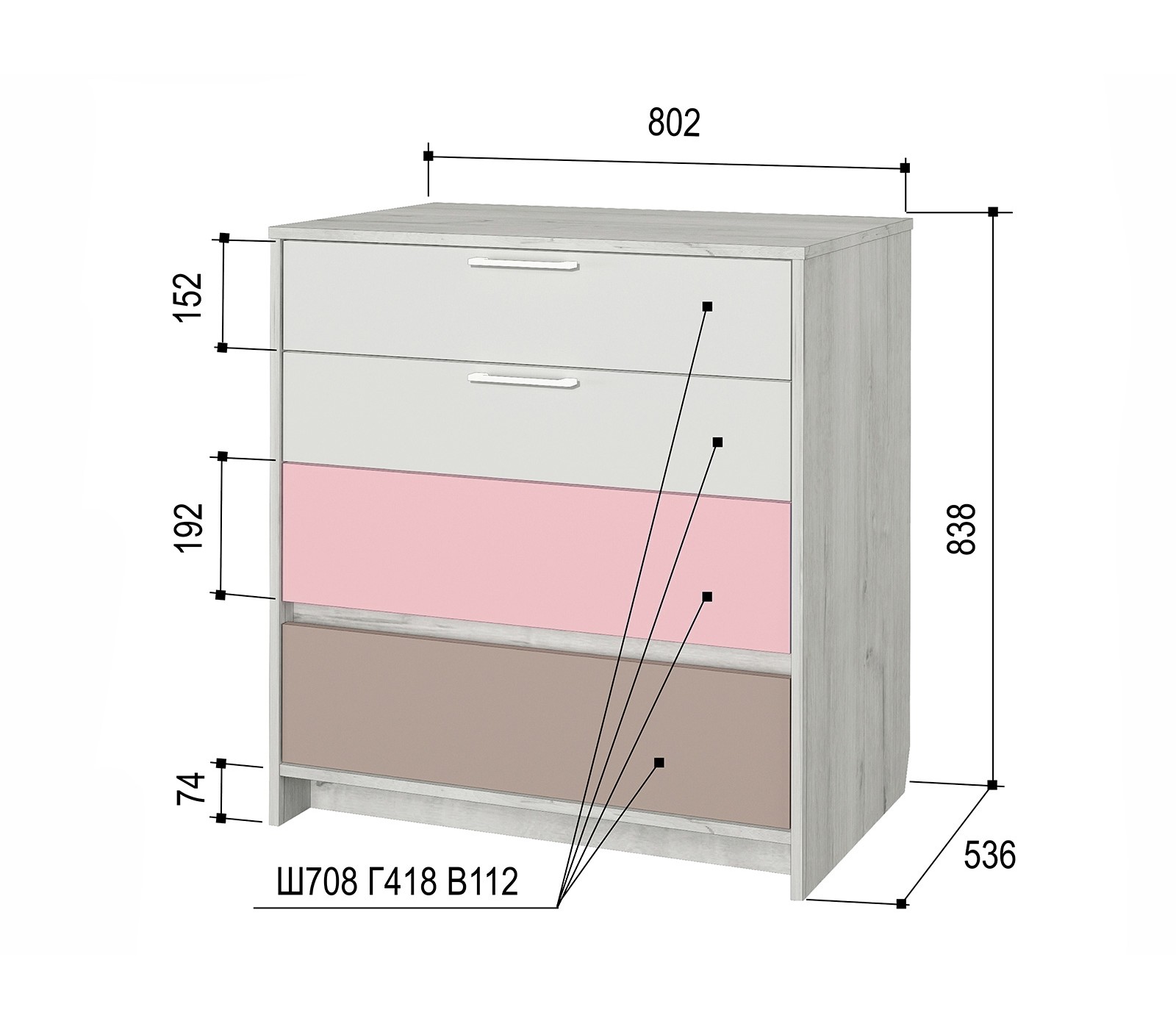 Простой и функциональный комод серии Зефир розовый. Надежные материалы не требующие сложного ухода, легко моются и не имеют постороннего запаха. Качественные направляющие ящиков, ламинирующие покрытие обеспечивают длительную эксплуатацию.