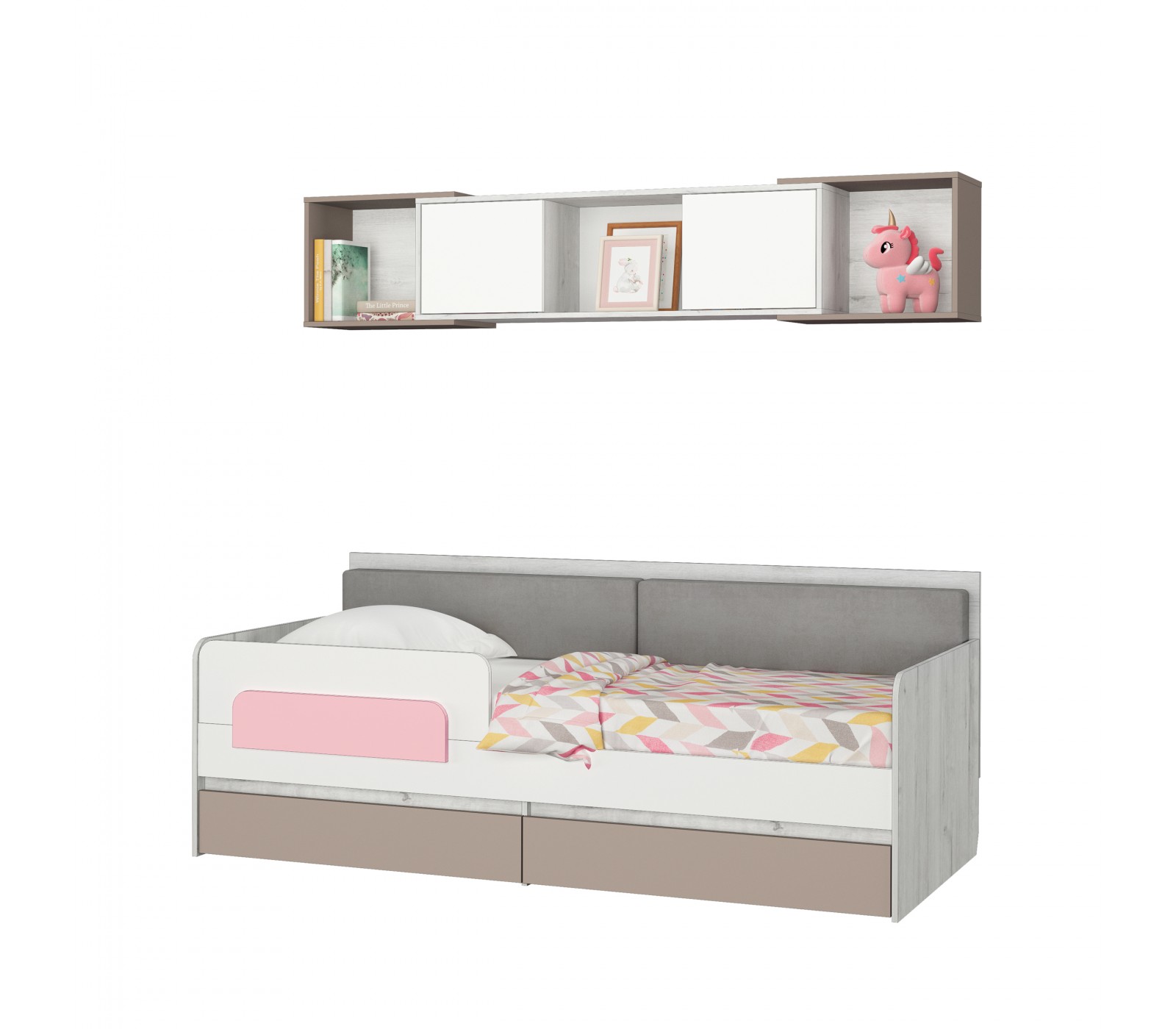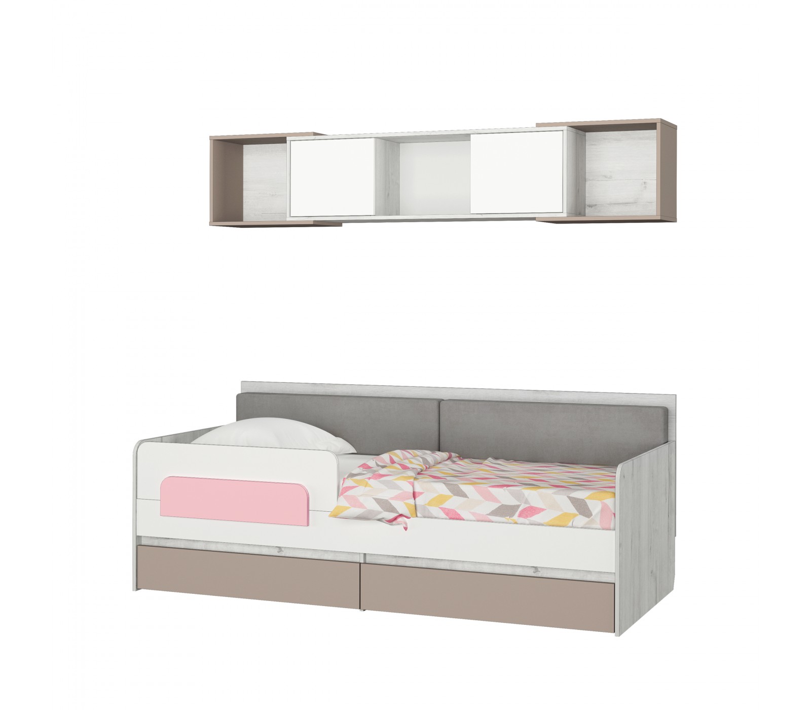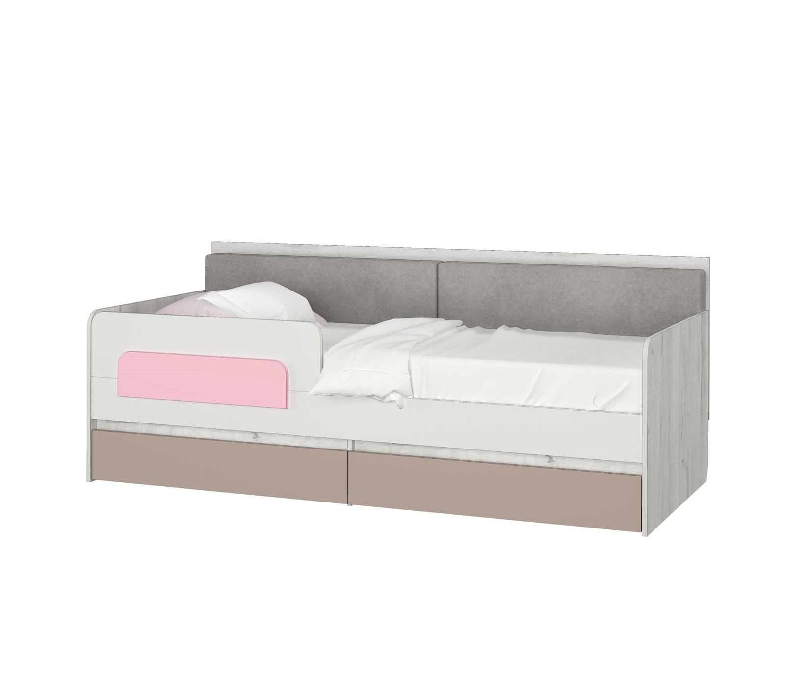 Кровать-тахта Зефир розовый с подушками с бортиком