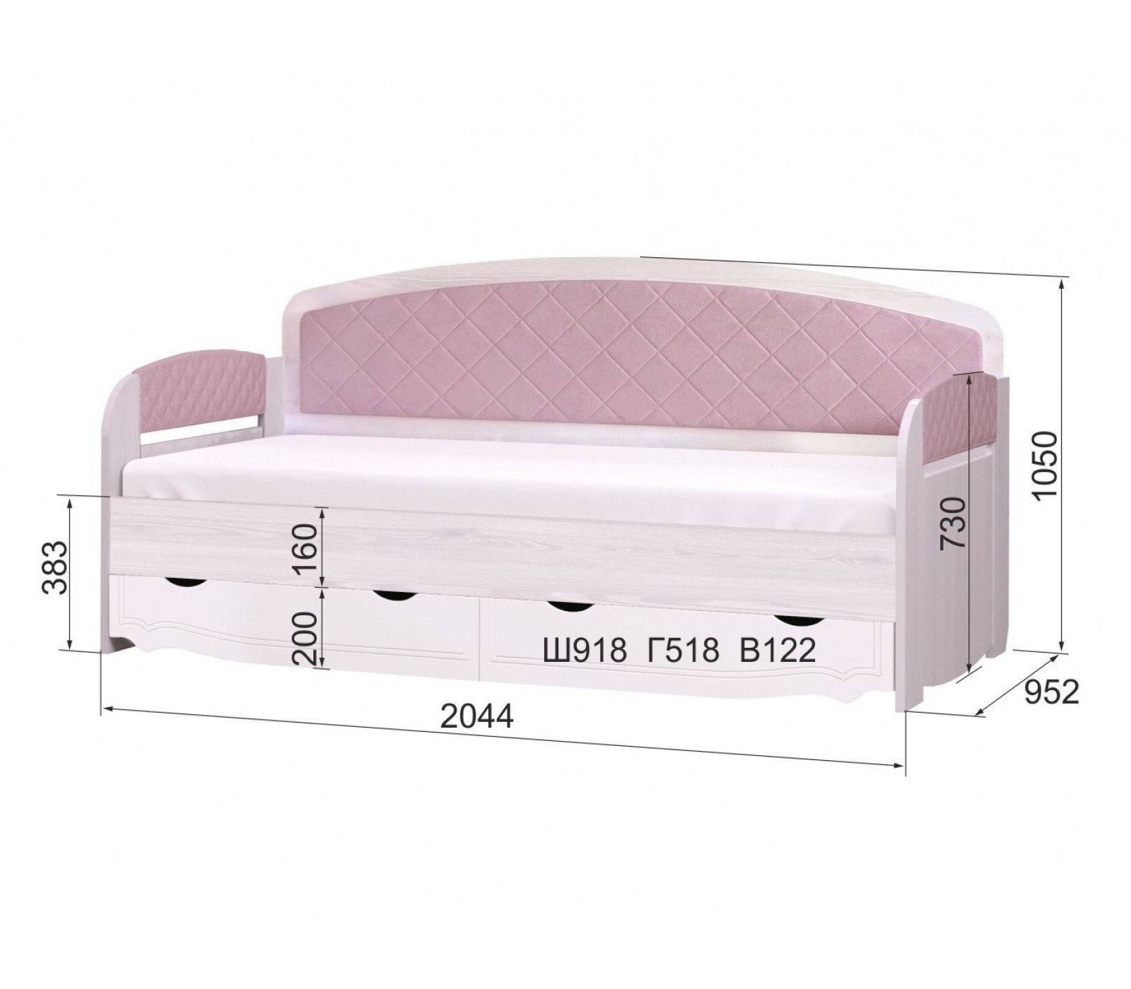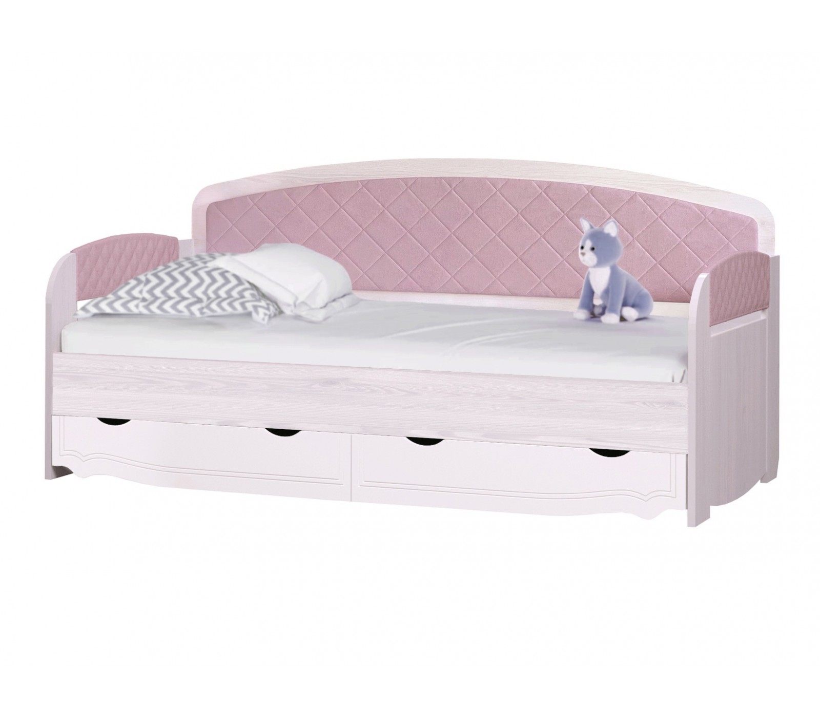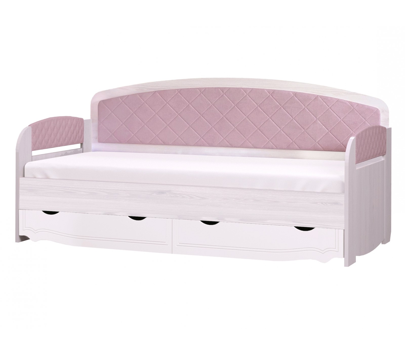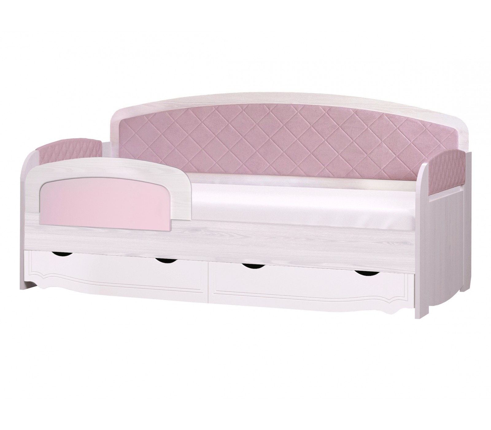Односпальная кровать-тахта Розалия одноименной яркой детской серии для девочек. Наличие жесткой спинки позволяет использовать кровать как диван. Для удобства хранения вещей укомплектована двумя ящиками. Для безопасности Вашего ребенка все кромки ЛДСП скругленные. Кровать-тахта Розалия имеет жесткое основание для матраса. Матрас приобретается отдельно.