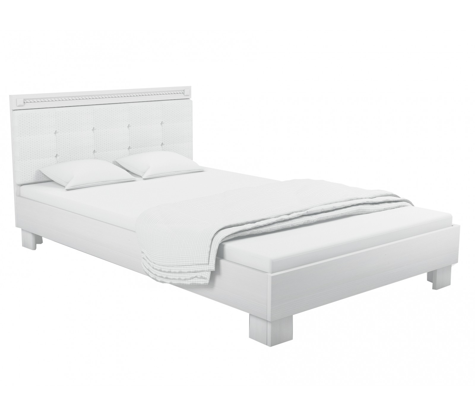 Кровать Азалия выполнена в нежном белом цвете. Для сохранения низкой цены корпус изготовлен из ЛДСП 22 и МДФ 16мм. Тонкое изголовье делает эту кровать очень компактной и отлично впишется в небольшую комнату. Изголовье покрыто мягкими подушечками из Экокожи "Пунто".
