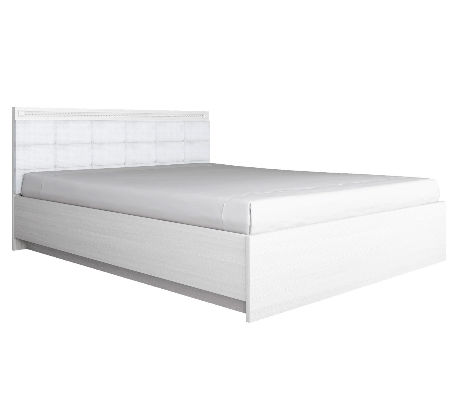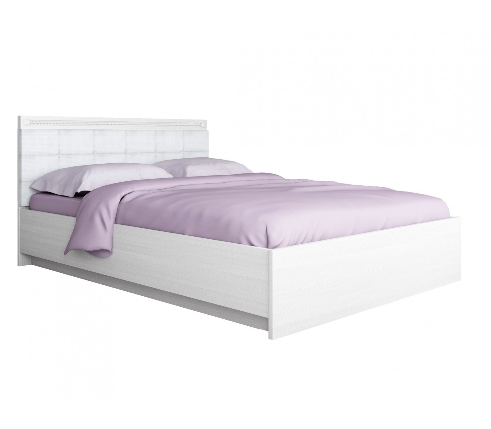 Кровать Азалия выполнена в нежном белом цвете. Для сохранения низкой цены корпус изготовлен из ЛДСП 22 и 16мм, данный материал не будет иметь такого сильного запаха как не ламинированный ДСП. Тонкое изголовье делает эту кровать очень компактной и отлично впишется в небольшую комнату. Изголовье покрыто мягкими подушечками из Экокожи "Пунто".