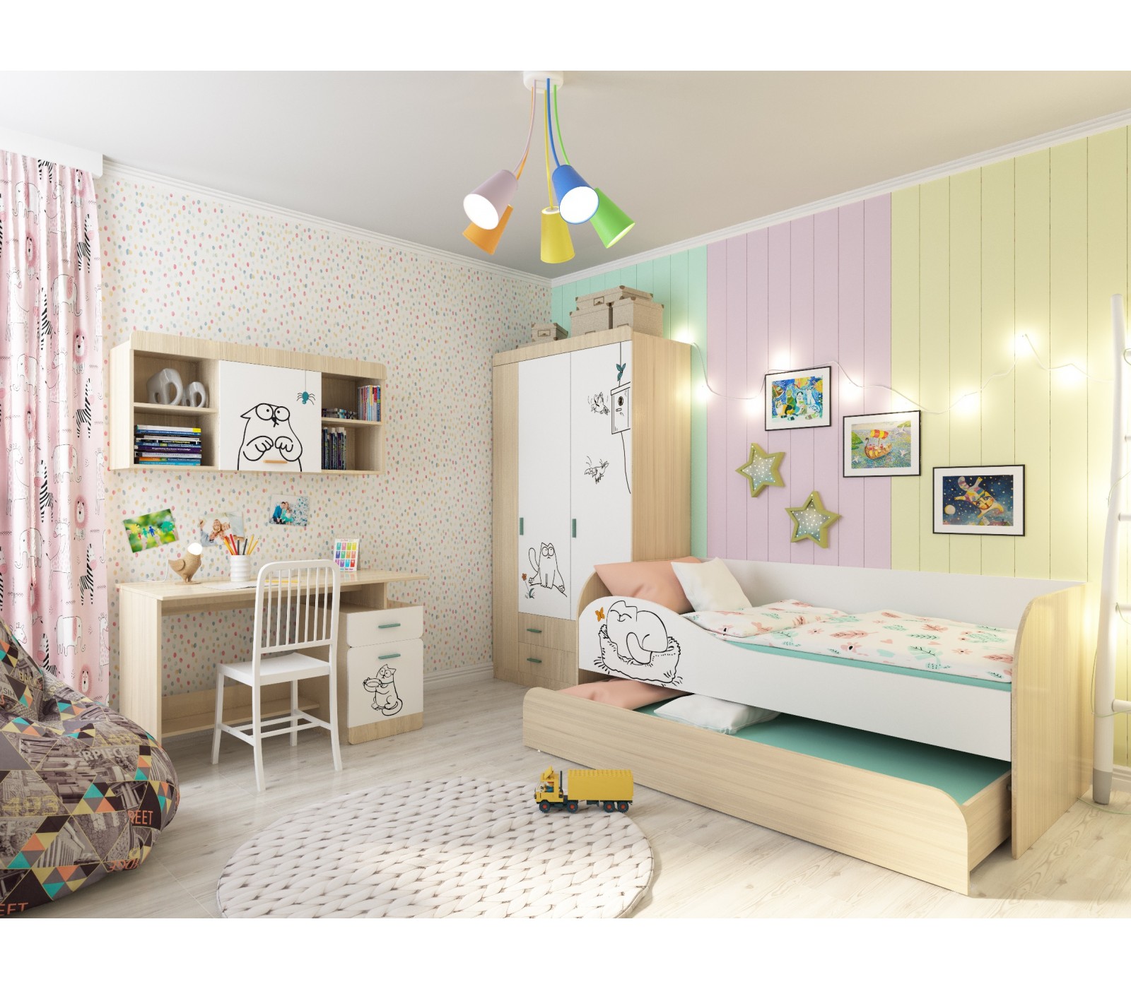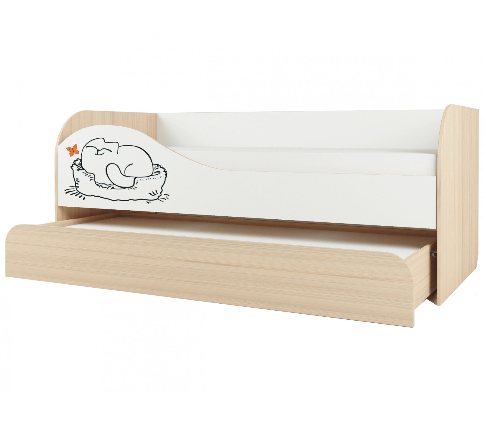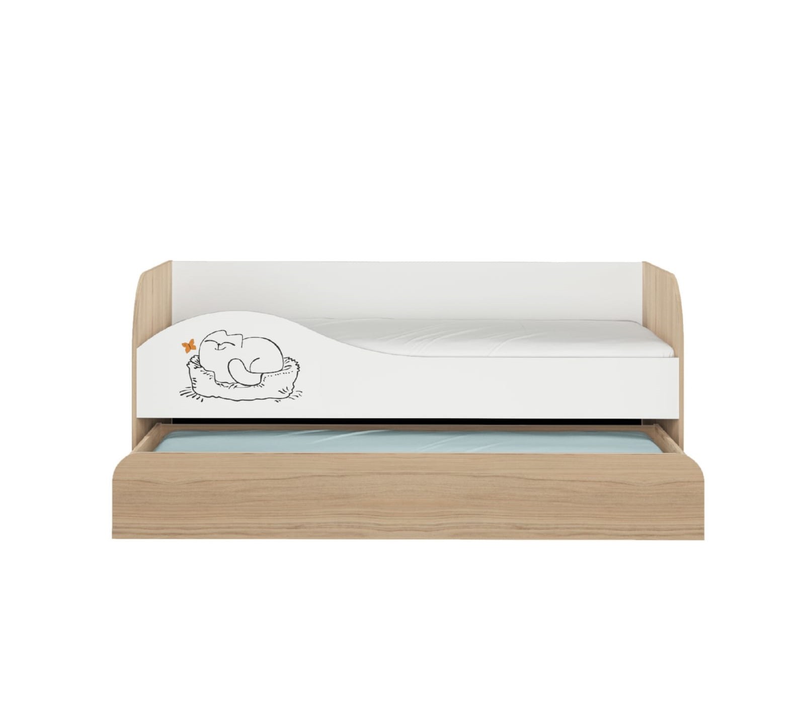 Двухуровневая кровать Кот с изображением кота Саймона радость для Ваших детей. Стационарное верхнее спльное место и выдвижное нижнее. Также удобно для размещение гостей Вашего ребенка. Качественные и экологичные материалы без посторонних запахов. Мебель имеет скругленные углы для безопасности. Надежная фурнитура. Нижняя часть выдвигается на двух колесиках по стационарным салазкам. Для нижнего спального места отлично подойдет Матрас Оптима Детский высотой 12 см.