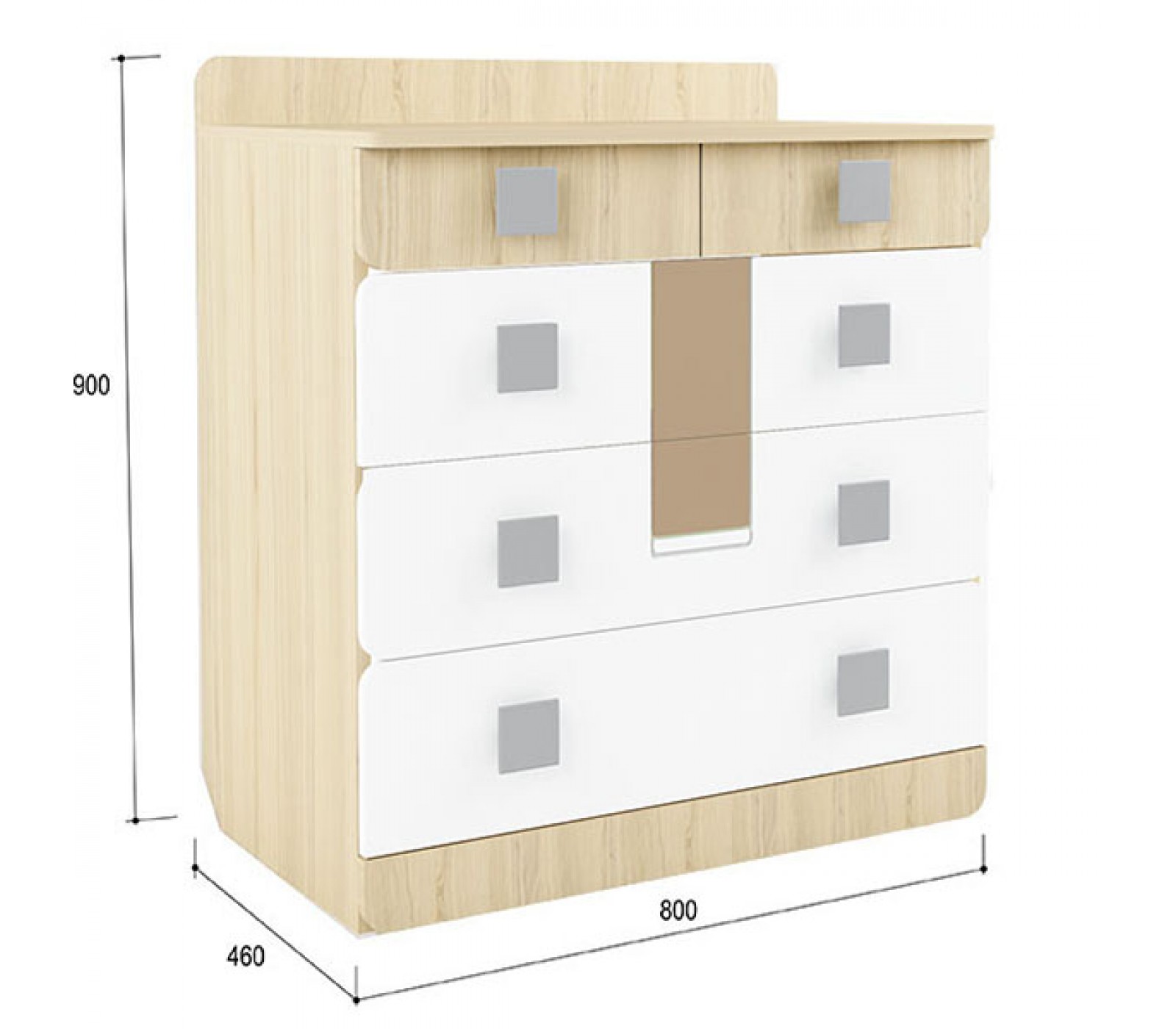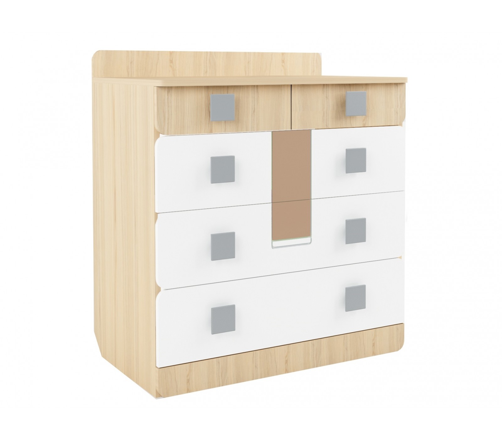 Стильный нестандартный дизайн комода с закругленными фасадами ящиков, закругленными ручками. Все это выполнено в том числе для безопасности Вашего ребенка. Надежные материалы не требующие сложного ухода, легко моются и не имеют постороннего запаха. Качественные направляющие ящиков, ламинирующие покрытие обеспечивают длительную эксплуатацию.