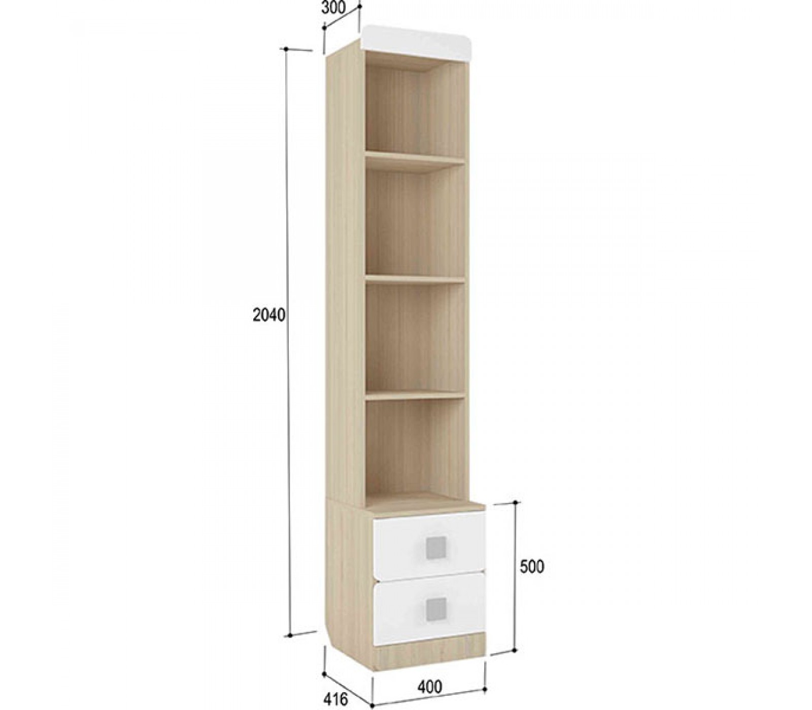 Стеллаж имеет два выдвижных ящика, фурнитура бесшумного закрытия.