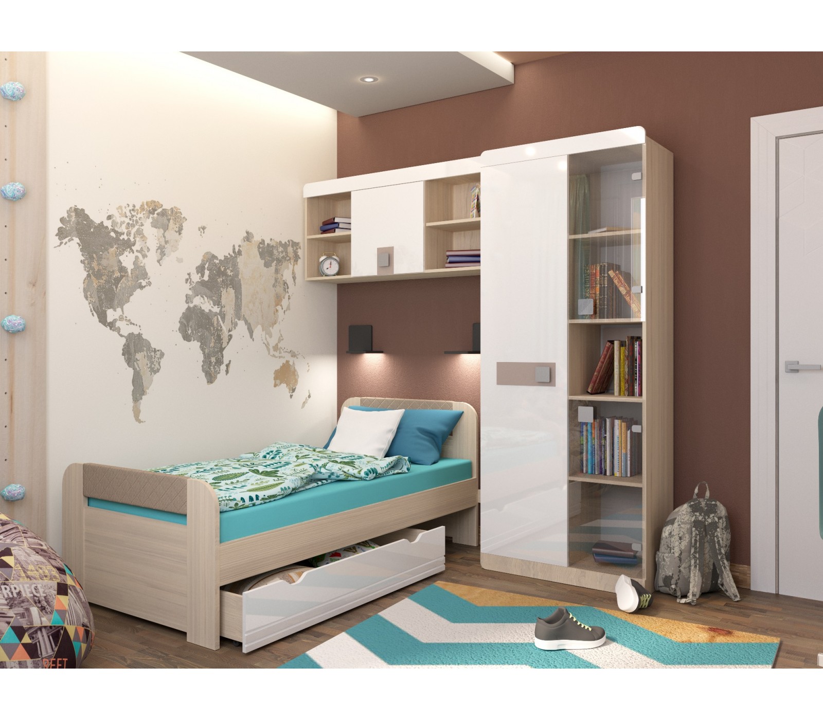 Полка малая на 80 см короче Полки "Стиль" Кофе с молоком, также она уже ее на 3 см. Фасады из МДФ покрыты пленкой в цвете белый глянец.