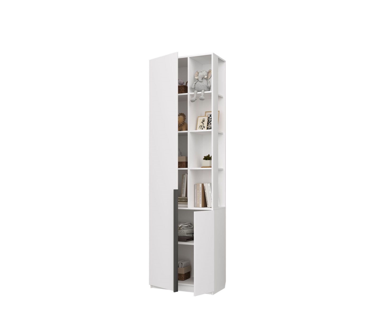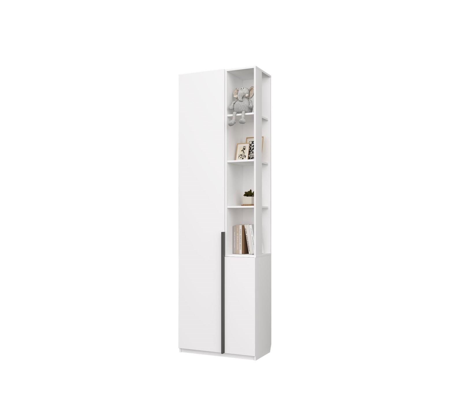 Пенал Чарли закрытый с открытыми полками из ЛДСП Белое сияние в комнату подростка.