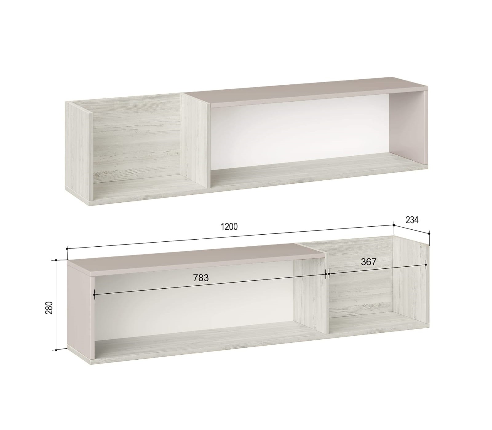 Полка навесная подростковой серии Чарли идеально впишется над письменным столом серии той же ширины.