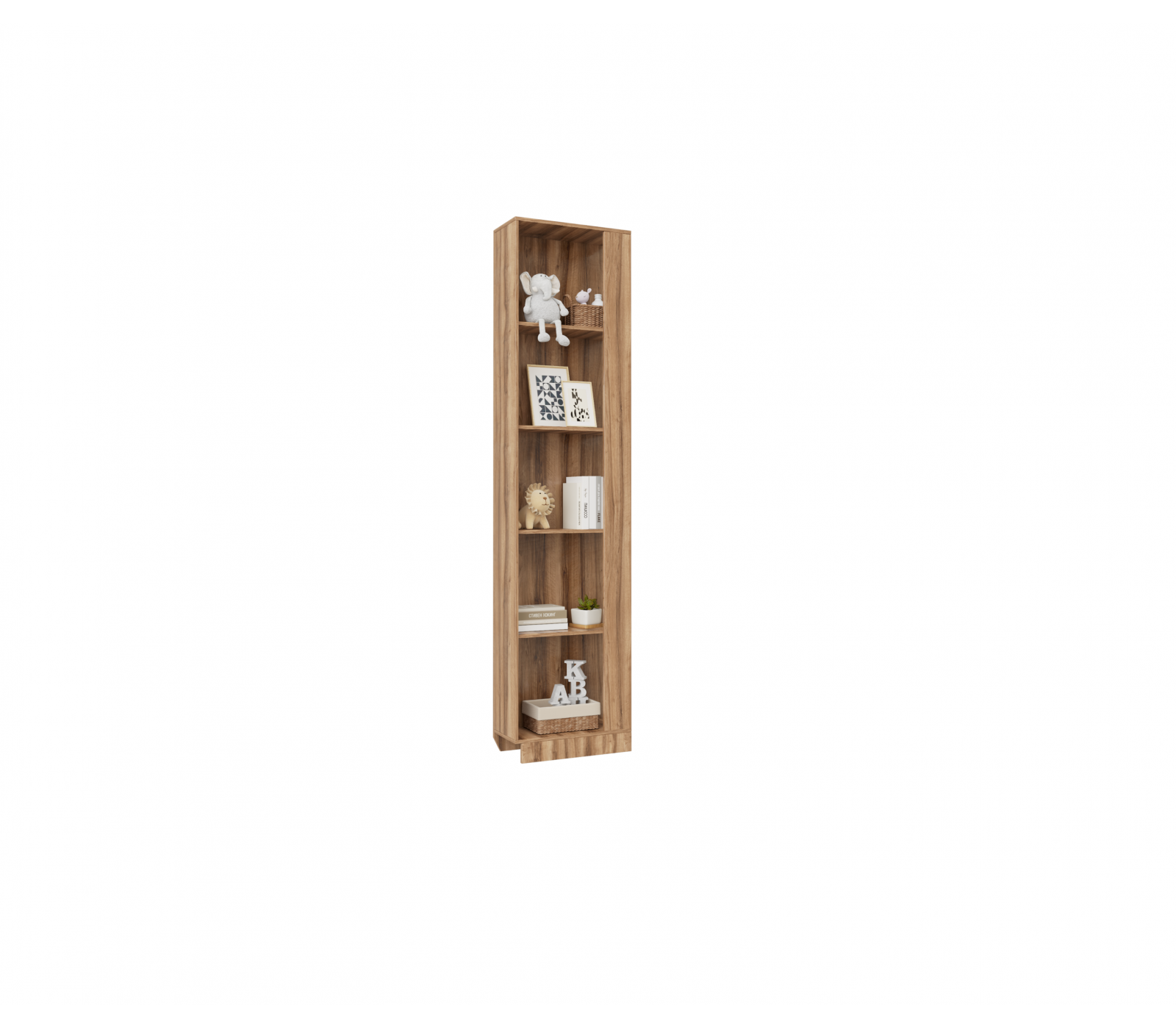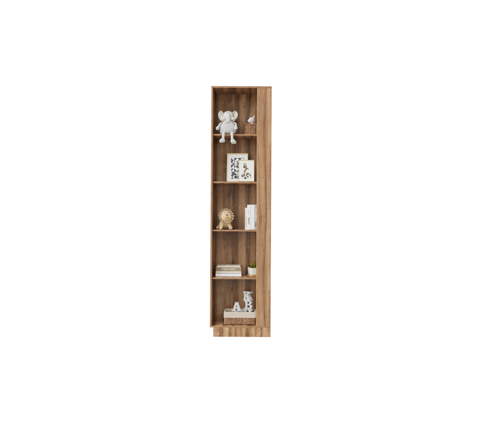 Стеллаж Чарли для книг открытого типа из ЛДСП цвета Авелано в комнату подростка.