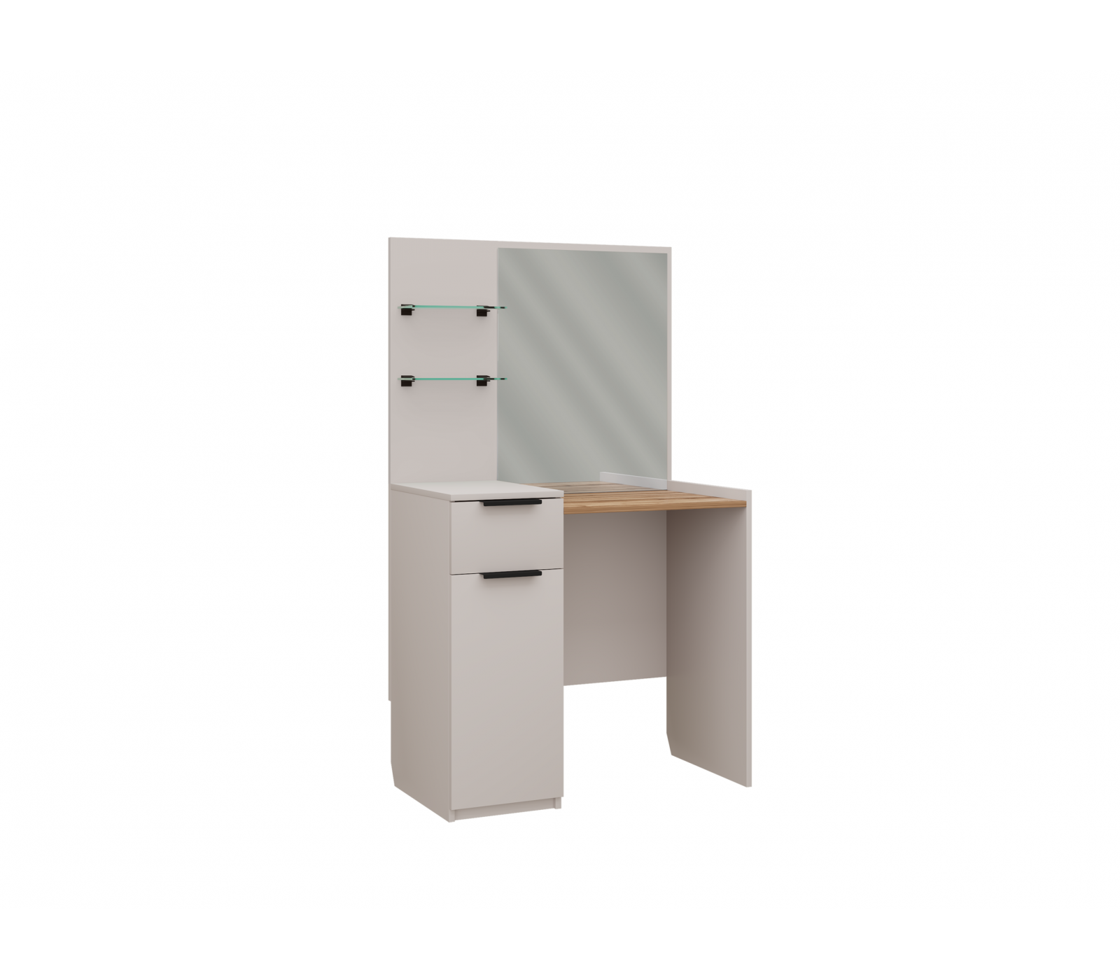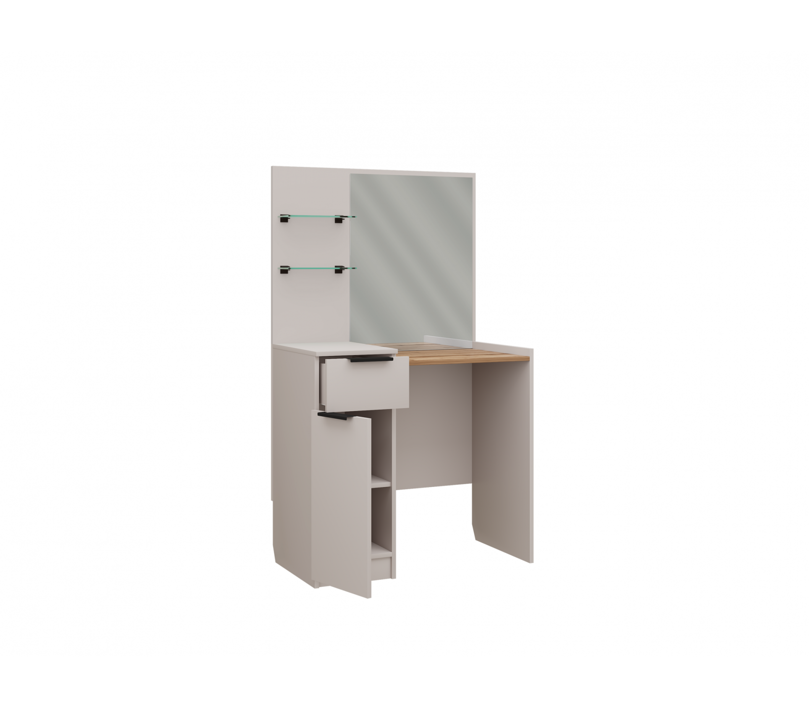 Стол туалетный Чарли 12 со стеклянными полками и выдвижным ящиком - каркас ЛДСП в цвете Кашемир/Авелано для подростковой комнаты.