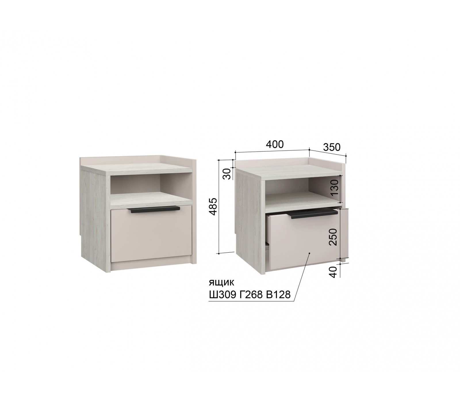 Тумба прикроватная подростковой серии Чарли с выдвижным ящиком