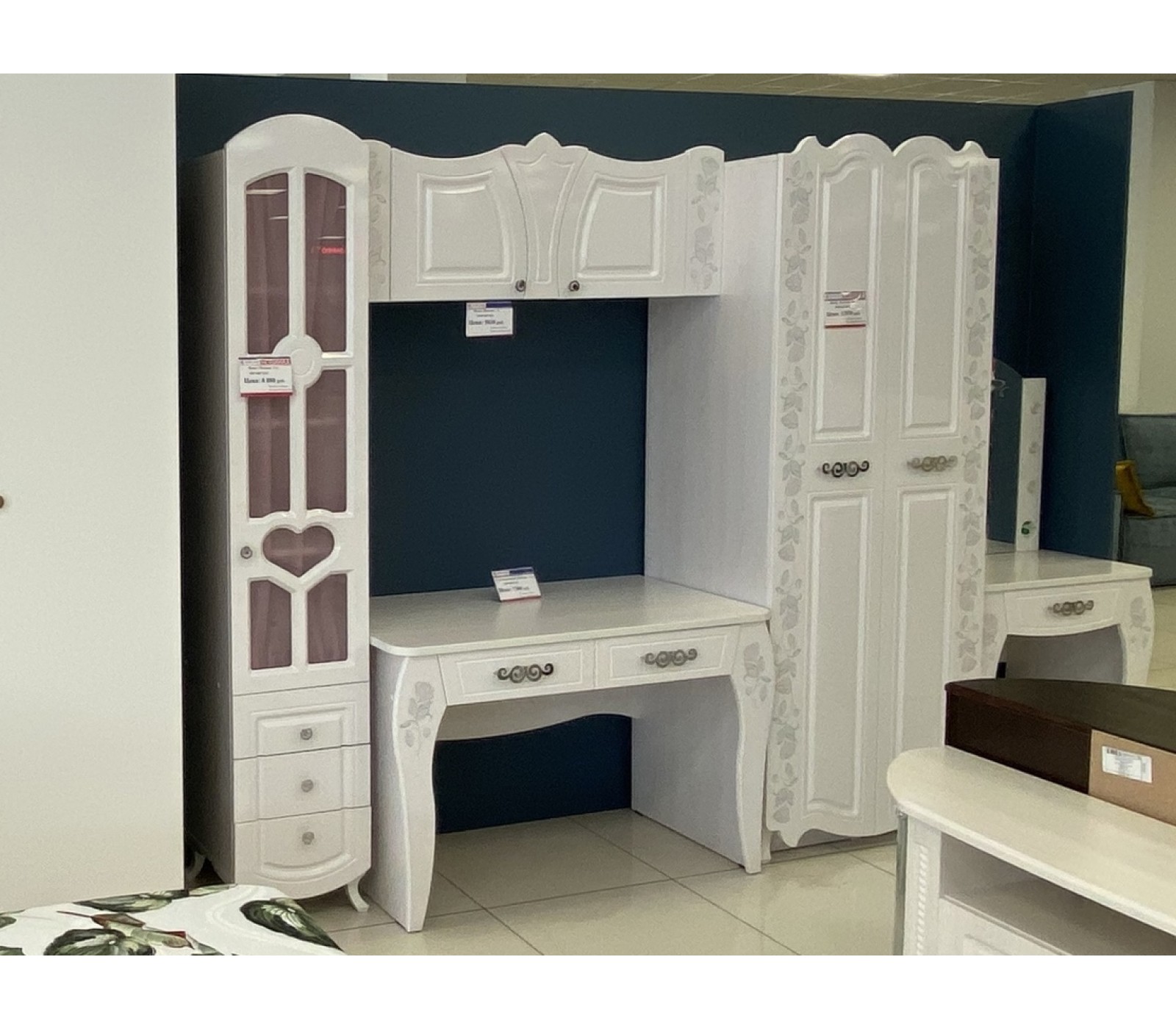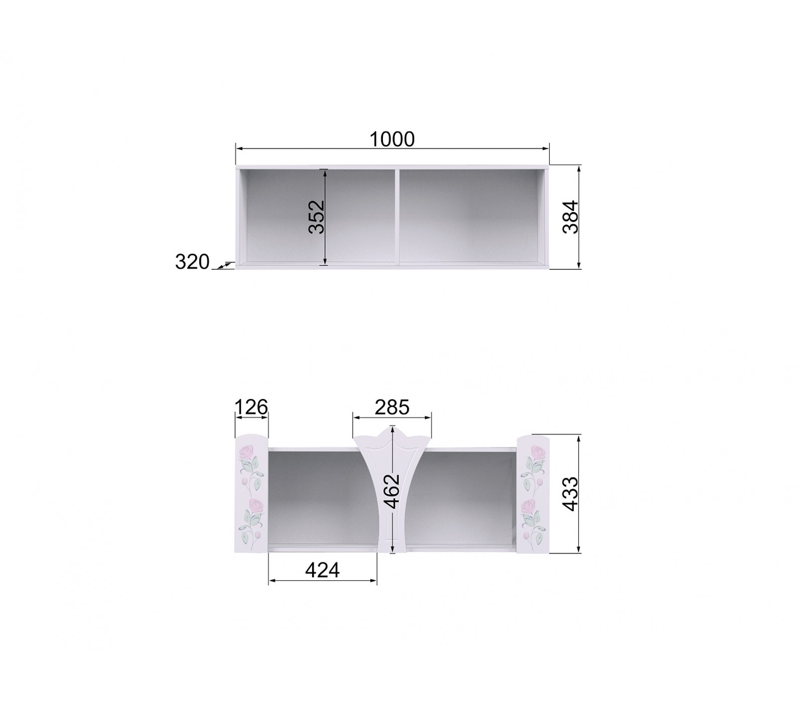 Полка навесная Розалия 7 компактно впишется над письменным столом одноименной серии.