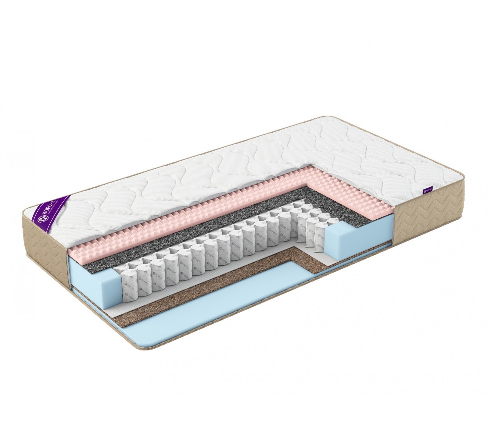 - Кокосовая койра – 10 мм. Натуральный материал для упругости и жесткости матраса.