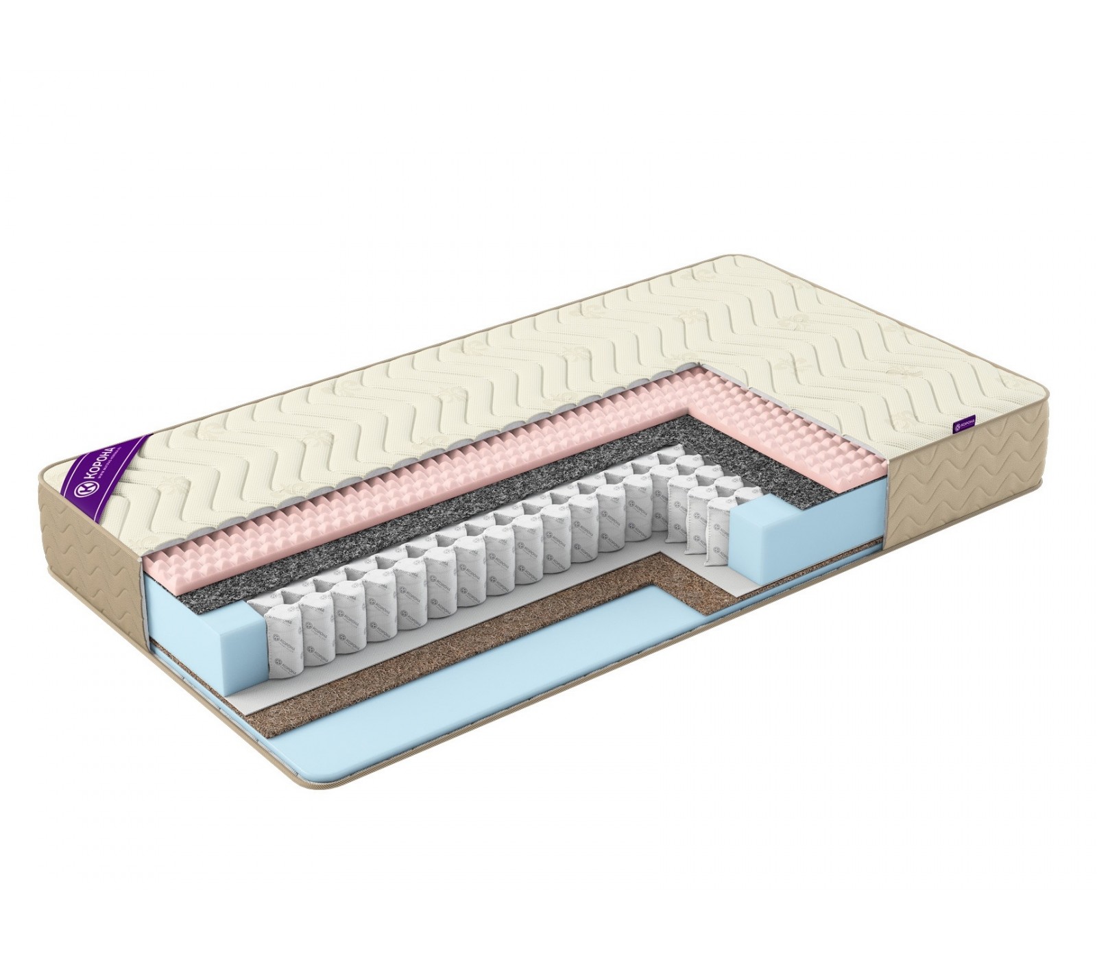 - Кокосовая койра – 10 мм. Натуральный материал для упругости и жесткости матраса.