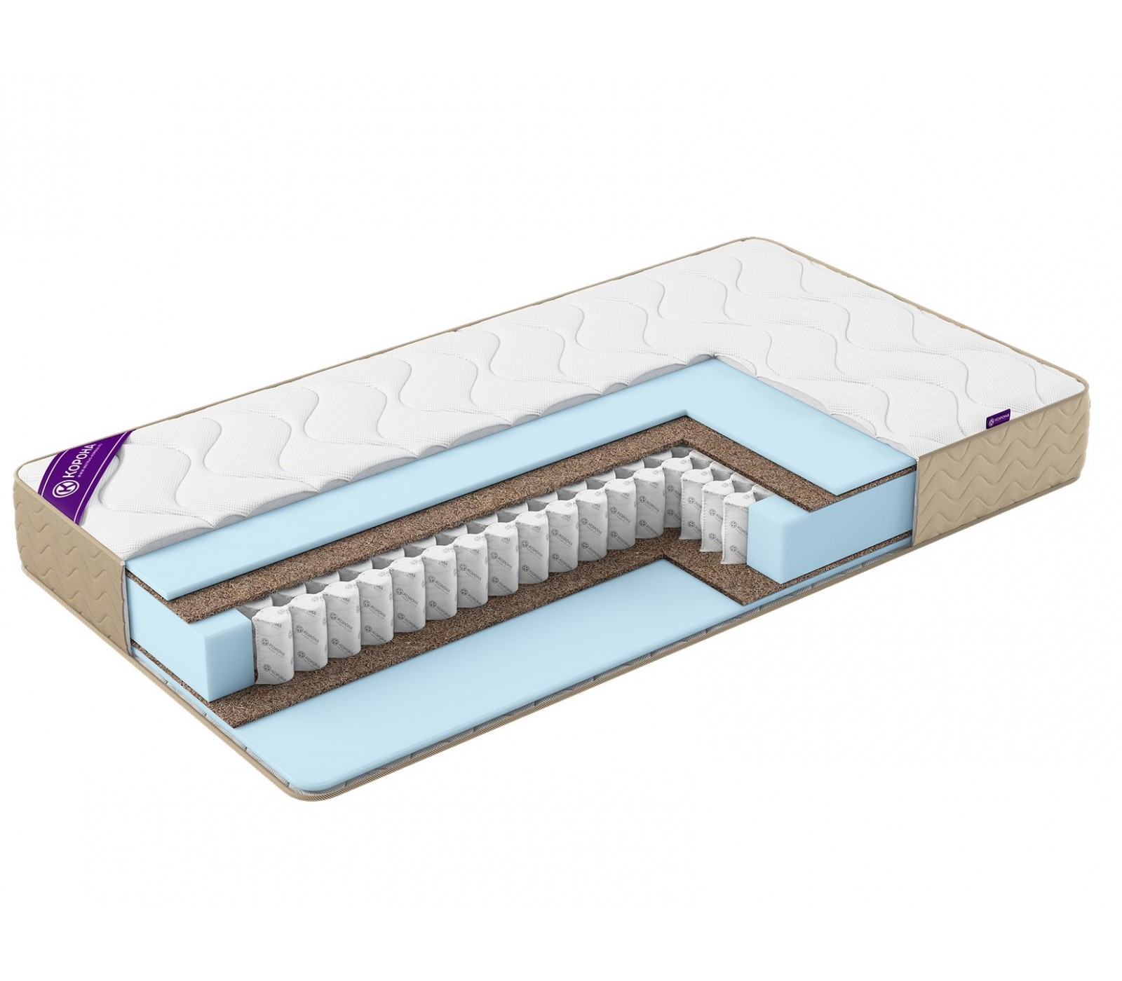 Пожалуй один из самых распространенных по своему составу ортопедических матрасов. Натуральная кокосовая койра в сочетании с эластичным пенополиуретаном обеспечит необходимую поддержку позвоночнику, при этом сохранит достаточный уровень комфорта практически для любого пользователя весом до 120 кг. Чехол из крепкого, стеганного жаккарда, прослужит долго и продлит срок службы вашего матраса на многие годы. Жесткость данной модели средняя. Цена - одно из лучших предложений на рынке матрасов.