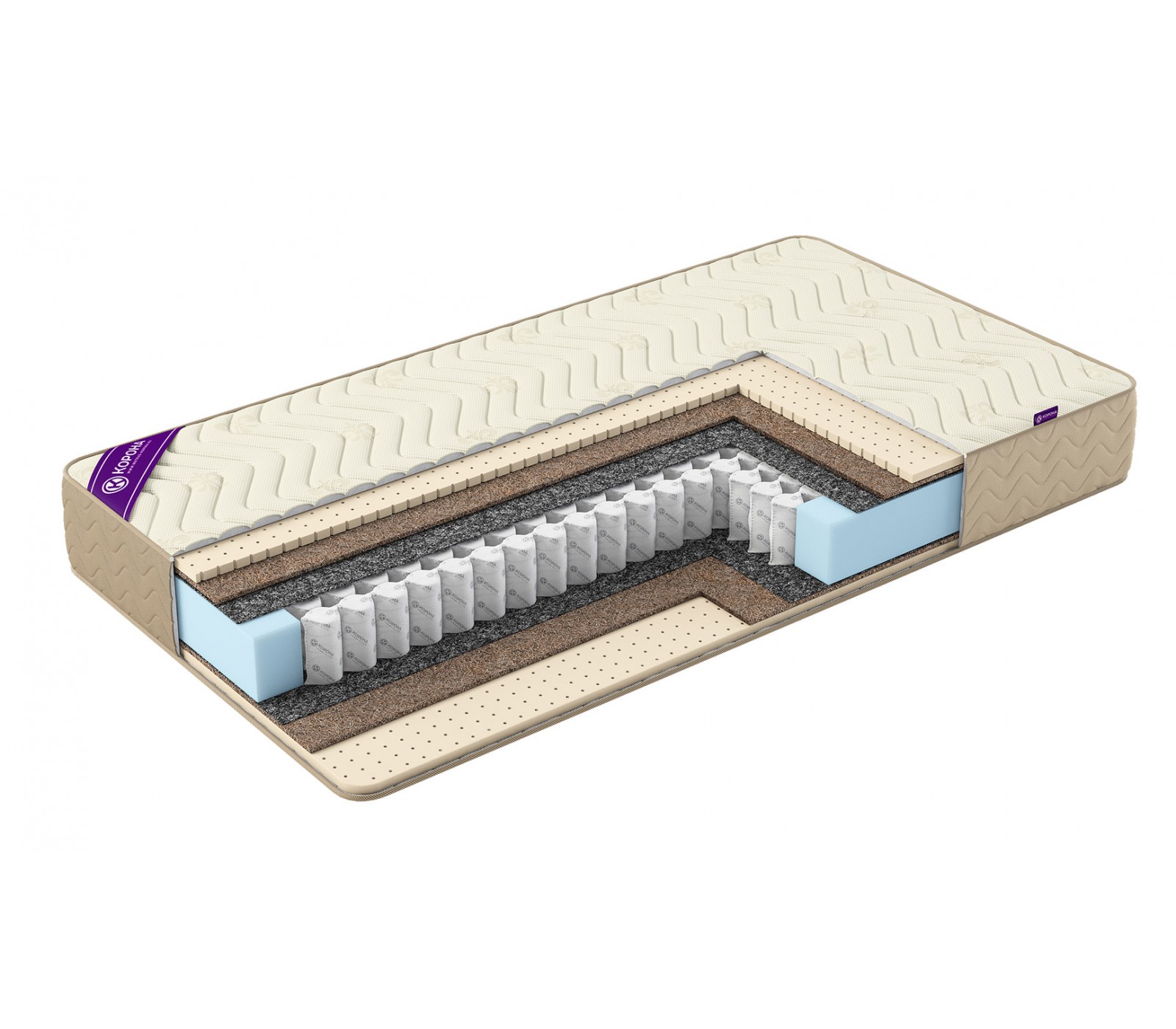 Одна из наиболее доступных ортопедических моделей с кокосовой койрой и латексом. Преимущества натурального латекса в его отличных эксплуатационных свойствах. Способность выдерживать длительные нагрузки, сохраняя свою эластичность и комфорт делает этот материал одним из самых «живучих» наполнителей.