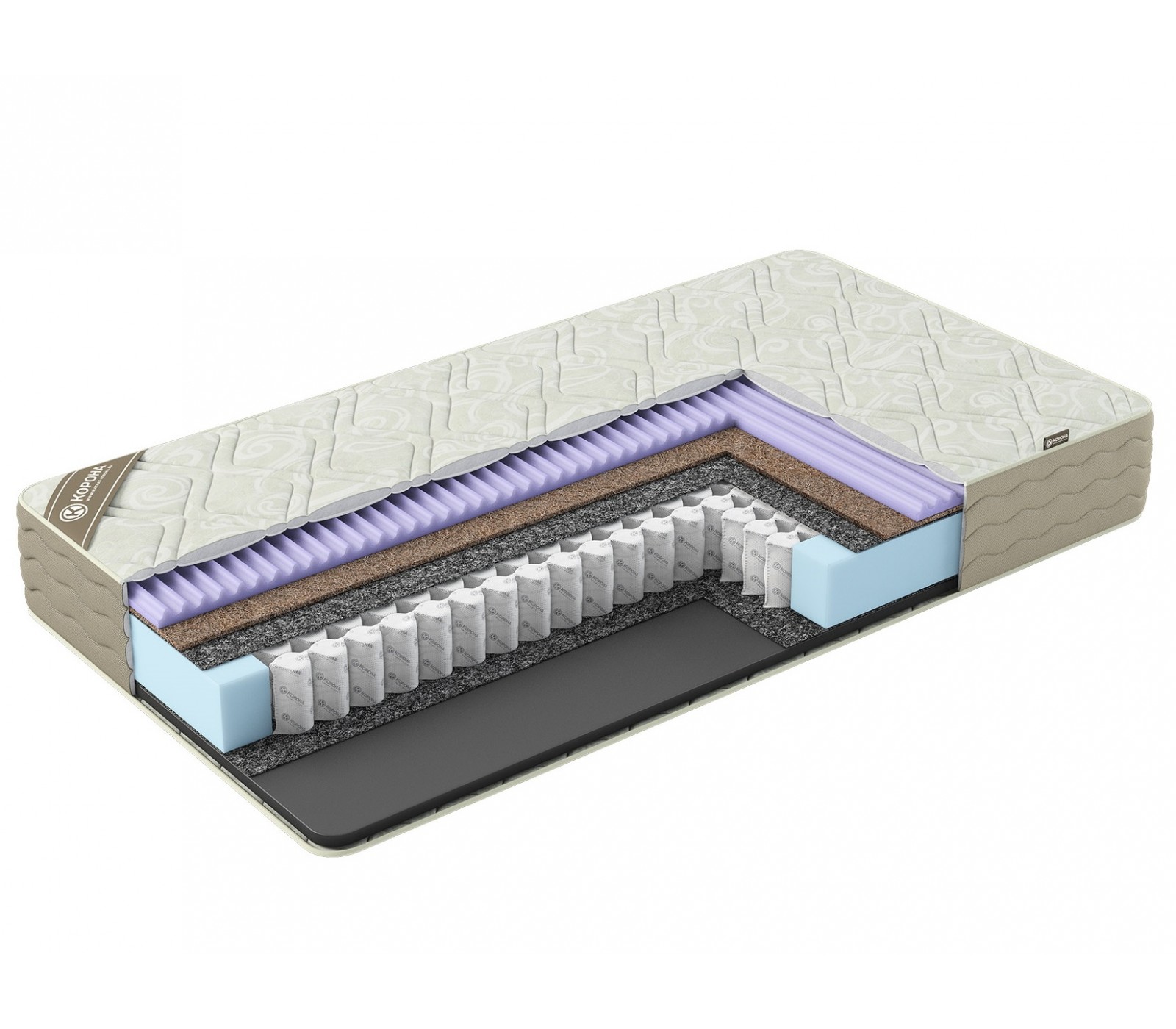 - Латексированная кокосовая койра – 10 мм. Натуральный материал для упругости и жесткости матраса.