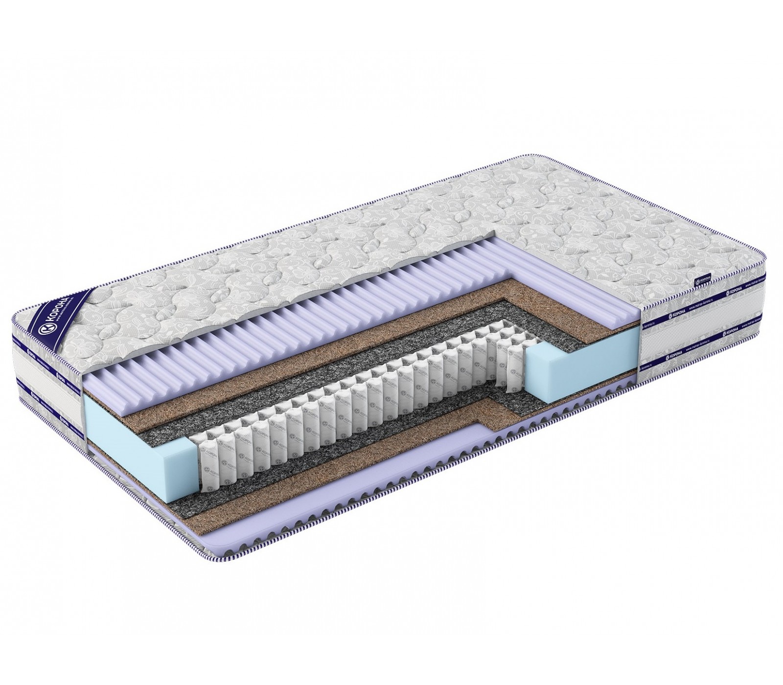 Самая высокая модель в серии. Прекрасный выбор для тех кто ценит высокое качество своего сна. Высокоэластичный рифленый пенополиуретан «Miofoam» высотой 35 мм в сочетании с анатомическим блоком EVS1000 обеспечивает высокий уровень комфорта, а слой натуральной кокосовой койры равномерно распределяет весовую нагрузку по площади матраса, делая из вашего спального места поистине королевское ложе.