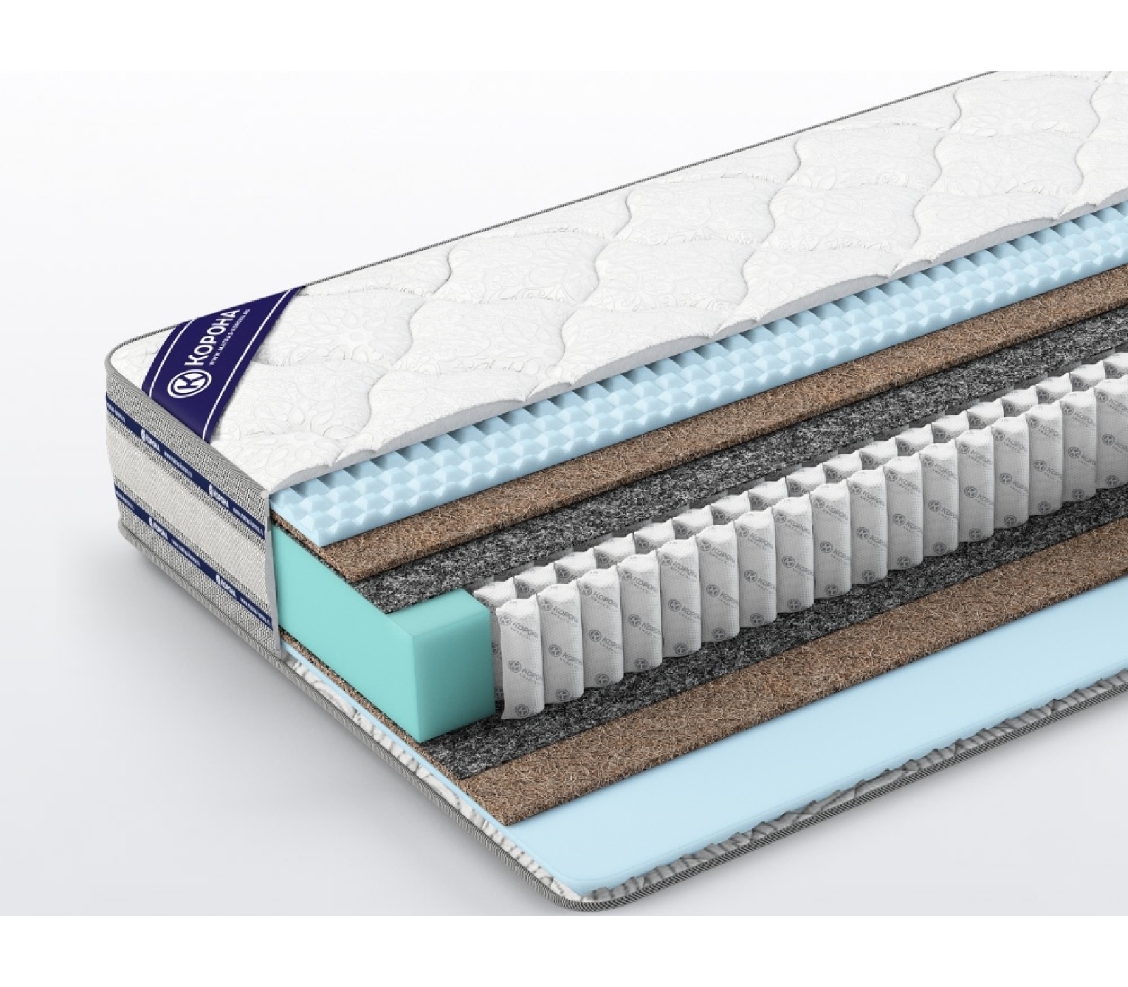 Модель, подходящая для большинства пользователей, предпочитающих среднюю жесткость спального места. Сочетание анатомического блока, наполнителей и чехла позволяет получить оптимальное соотношение цены и качества. Натуральная кокосовая койра в сочетании с пенополиуретаном выдерживает значительную весовую нагрузку. Поверхность матраса одновременно и умеренно-жесткая, и не оказывает излишнее давление на ткани и мышцы пользователя.