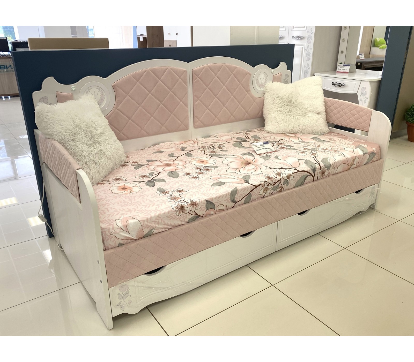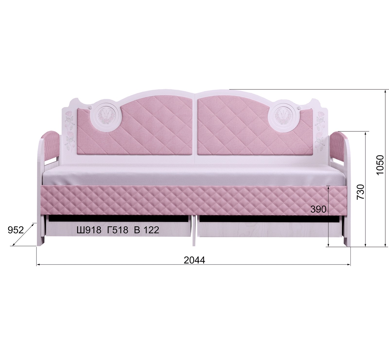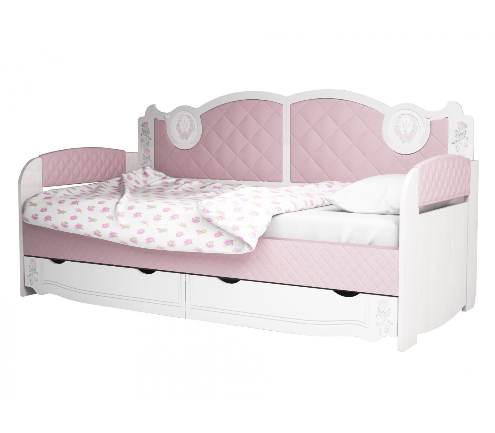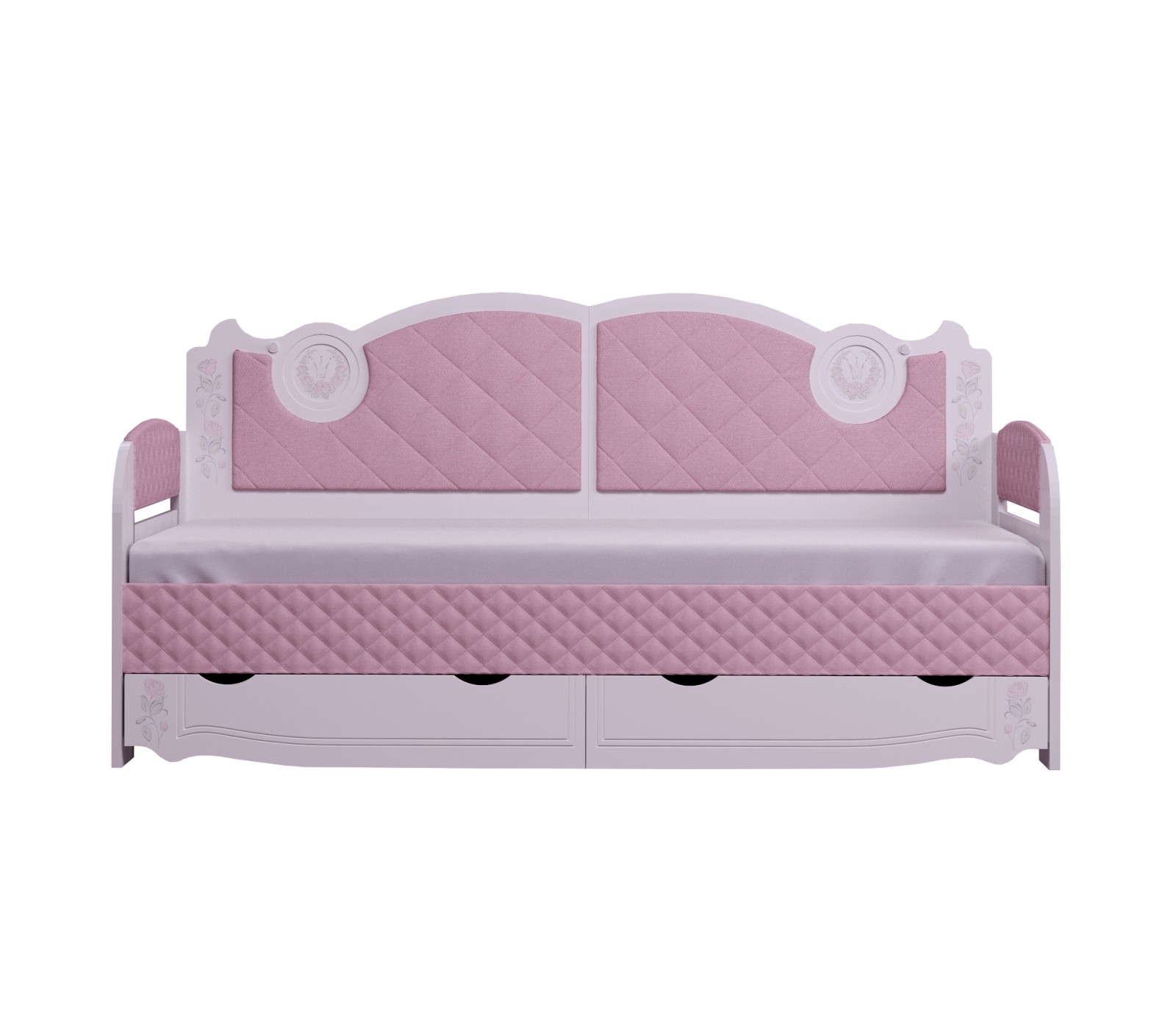 Односпальная кровать-тахта Розалия одноименной яркой детской серии для девочек. Наличие жесткой спинки позволяет использовать кровать как диван. Для удобства хранения вещей укомплектована двумя ящиками. Для безопасности Вашего ребенка все кромки ЛДСП скругленные. Кровать-тахта Розалия имеет жесткое основание для матраса. Матрас приобретается отдельно.