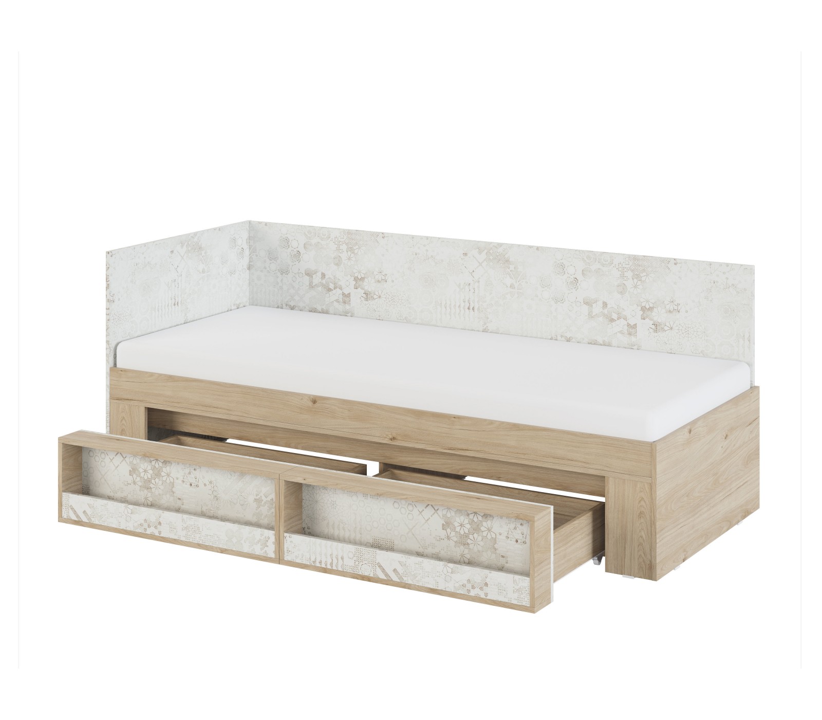 Кровать имеет два выкатных ящика на роликовых опорах, открываются одновременно.