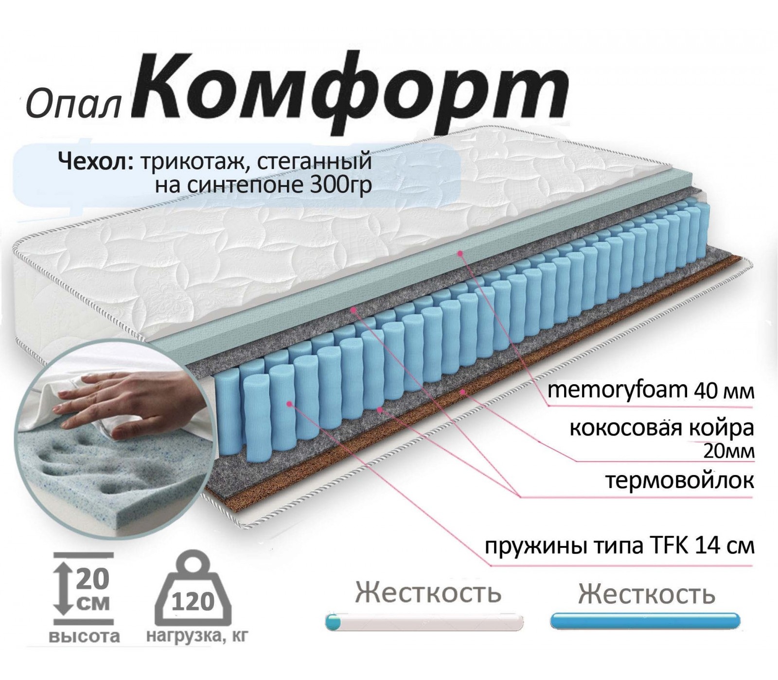 Одна из самых комфортных моделей с двухсторонней жесткостью в общей линейке матрасов. За основу взят блок независимых пружин TFK. С одной стороны данного матраса используется кокосовая койра, которая придает значительную жесткость. Вторая сторона изготавливается из инновационного материала Memoryfoam, который был специально разработан для людей страдающими болями в спине. Уникальность Memoryfoam заключается в том, что под воздействием тепла тела человека, данный материал принимает форму лежащего на нем и сохраняет её благодаря эффекту памяти.