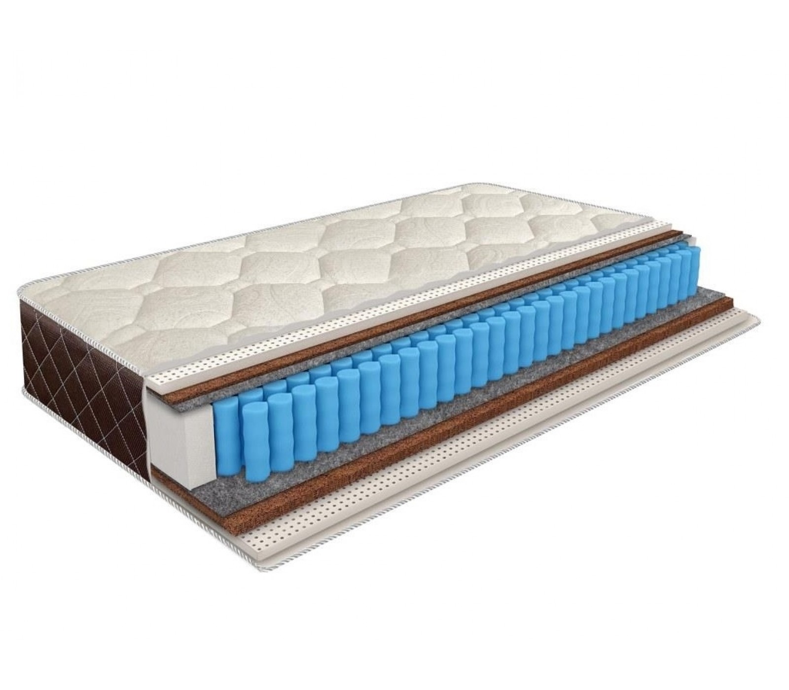 Двусторонний премиальный матрас с разными степенями жесткости сторон. Создан из абсолютно экологически чистых материалов, таких как латекс и кокос. За основу взят независимый пружинный блок TFK ( не менее 256 пружин на м2), который изолирован термоскрепленным войлоком. Сочетание слоев данного матраса понравится людям, ведущим активный образ жизни, т. к. он дарит комфорт и упругость одновременно.
