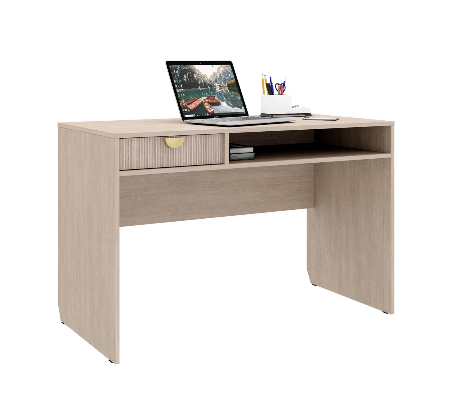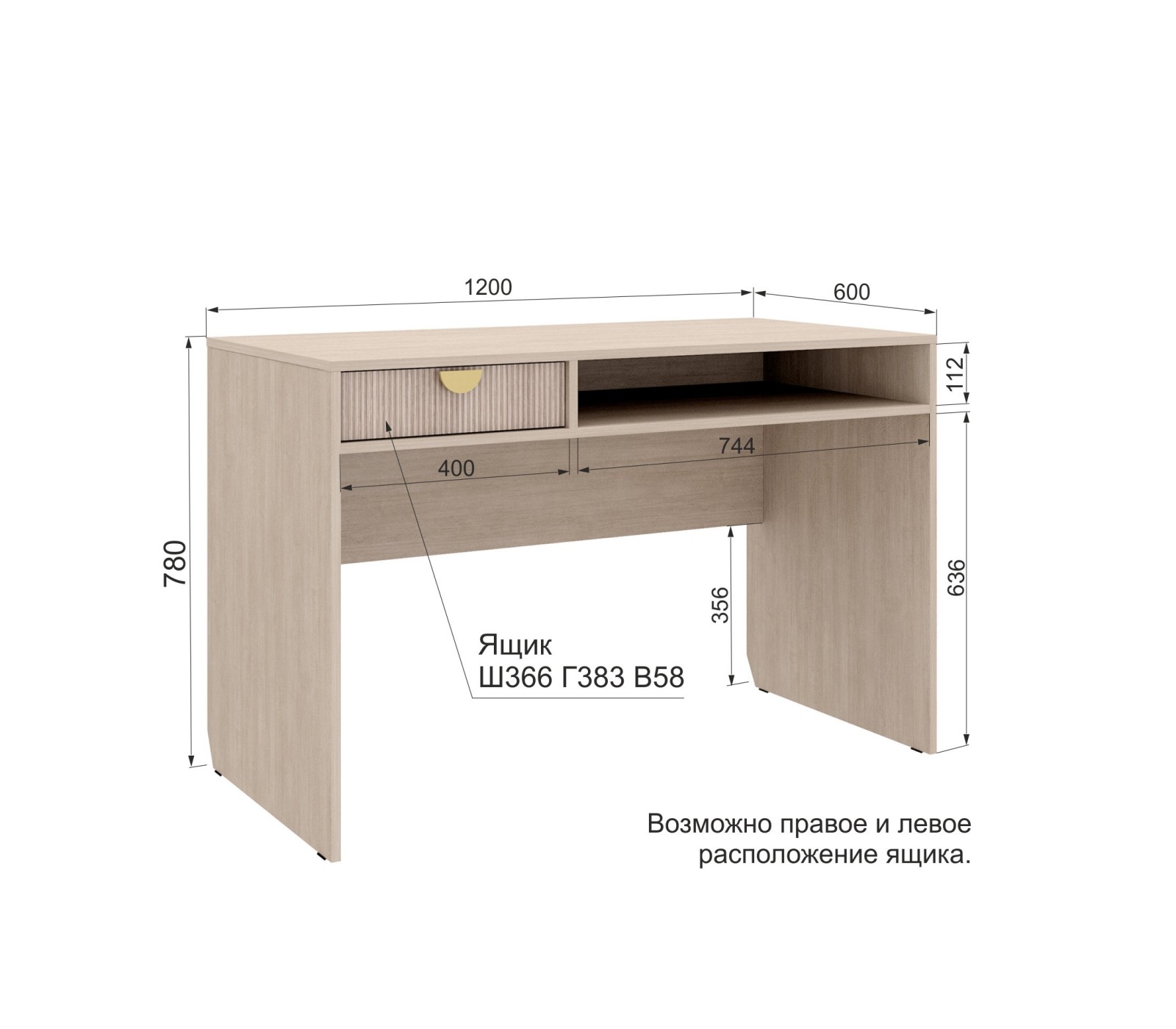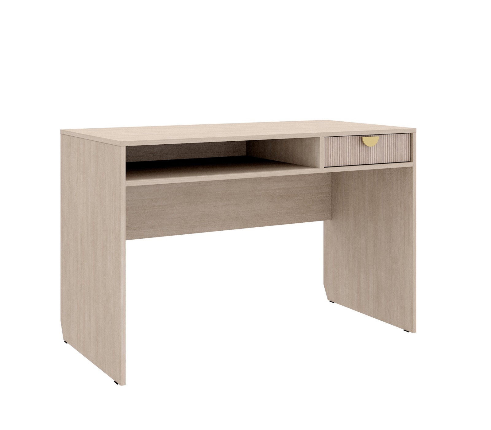 Корпус ЛДСП 16. Фасады рифленые. Ручка матовое золото. У ящика фурнитура скрытая плавного закрывания с нижним креплением.