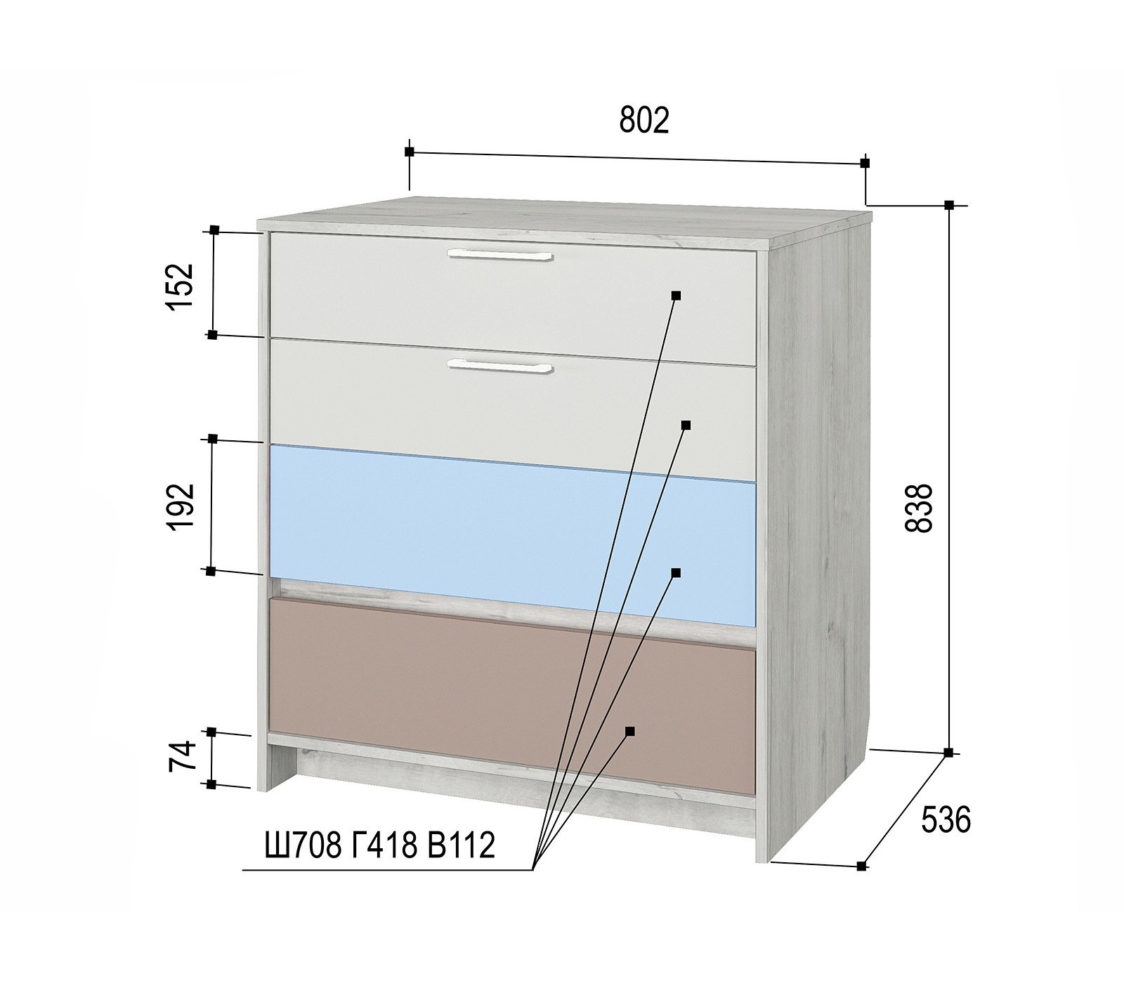 Простой и функциональный комод серии Зефир голубой. Надежные материалы не требующие сложного ухода, легко моются и не имеют постороннего запаха. Качественные направляющие ящиков, ламинирующие покрытие обеспечивают длительную эксплуатацию.
